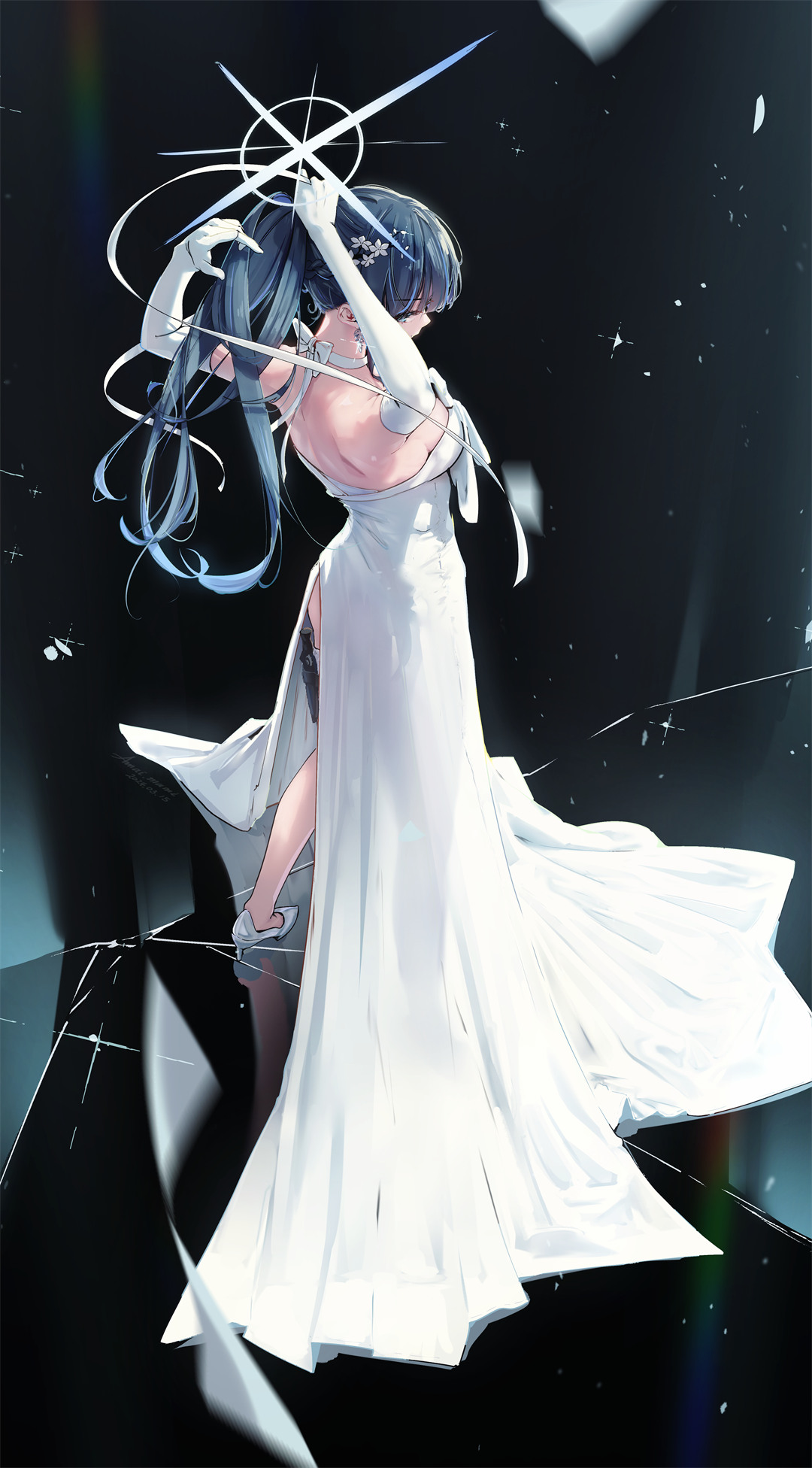 本文推荐了《明日方舟》黍黍、《原神》申鹤、《星穹铁道》黄泉与花火等热门游戏的动漫角色壁纸,其中重点展示了一幅深棕长发少女的插画。该角色梳高马尾,头顶悬浮光环,身着白衬衫、蓝领带与黑色百褶裙,双手持矿泉水立于暖光走廊中。画面通过静谧孤寂的氛围,呼应了标题"从此清风陪酒,长路永远一个人走"的意境,传递出独行者的情感基调。