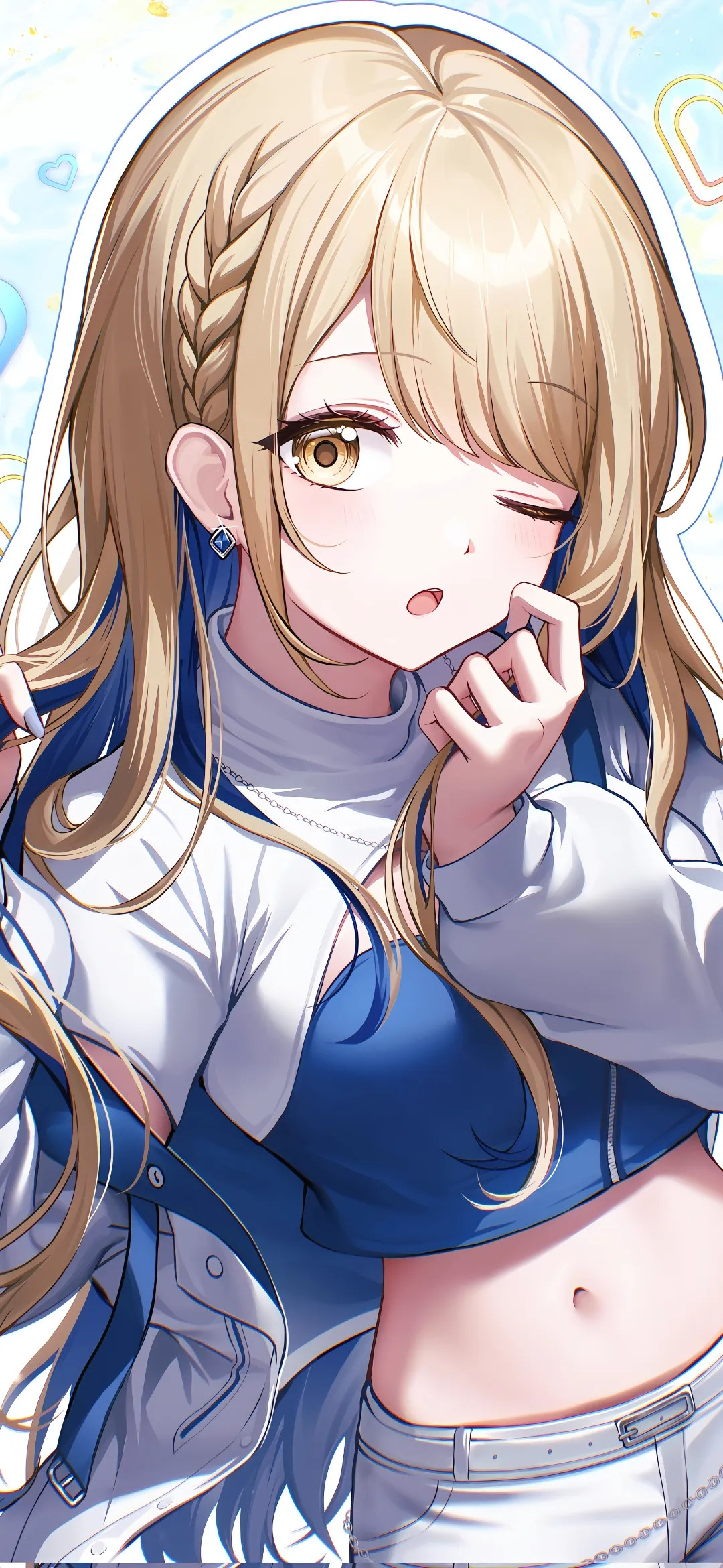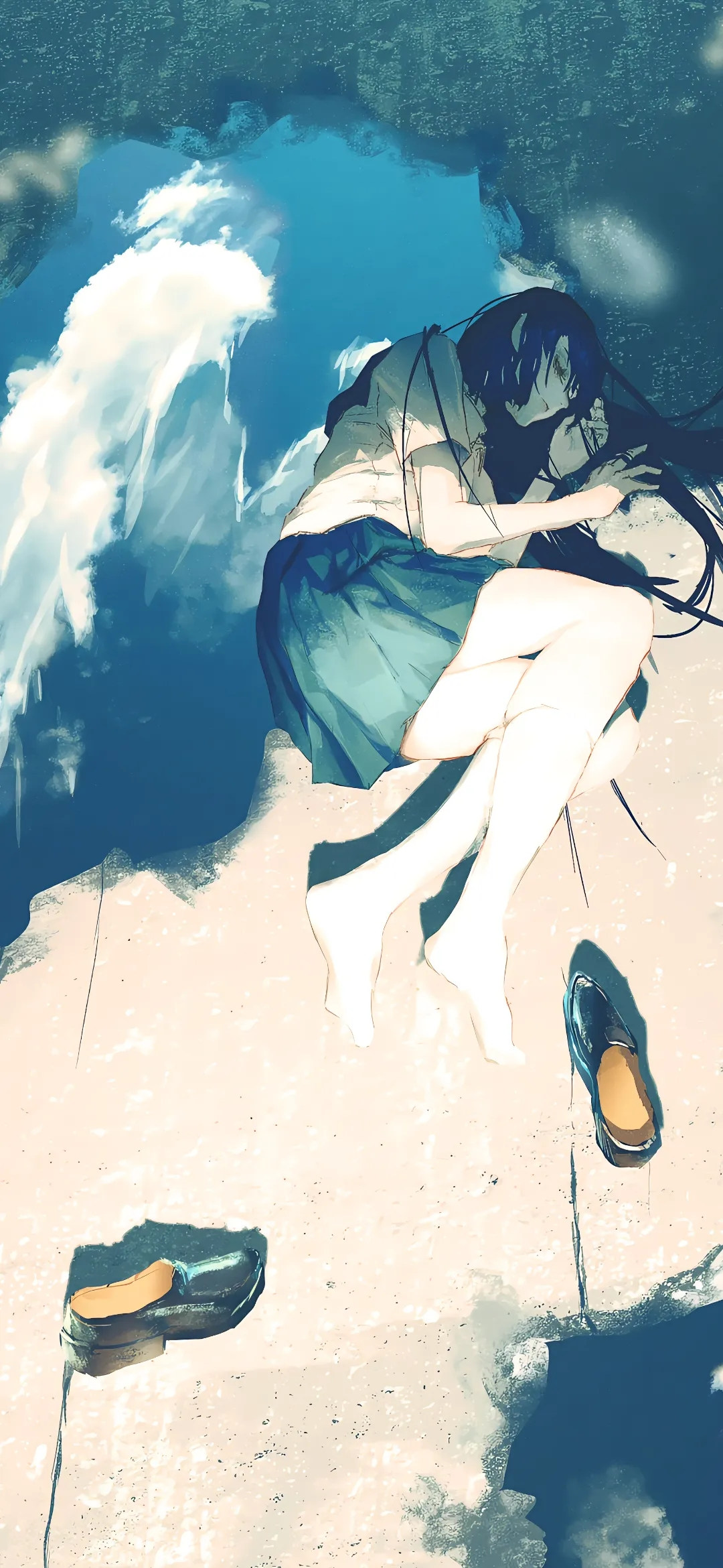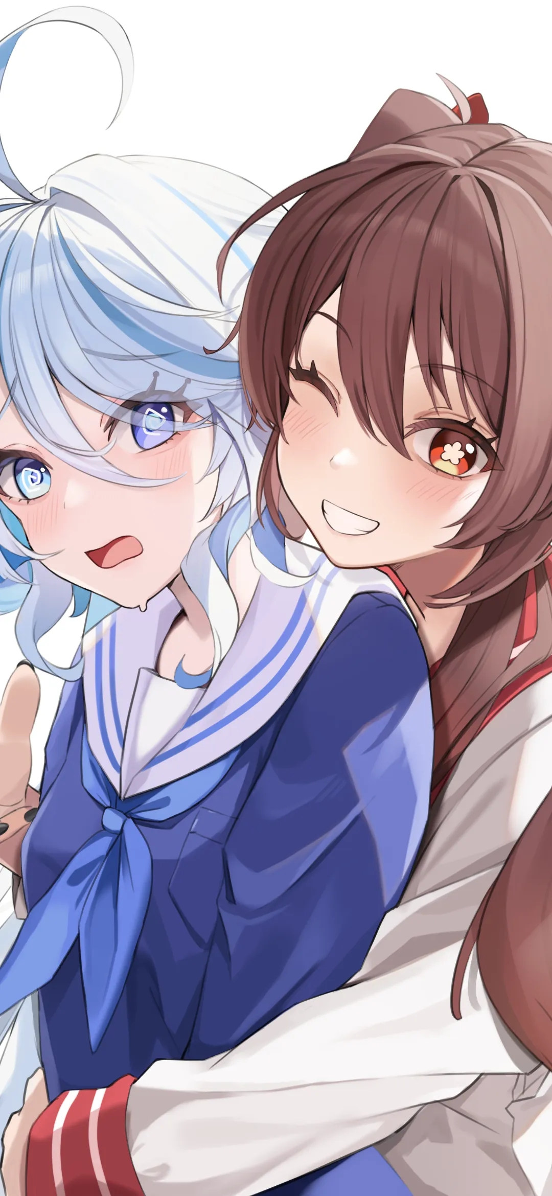 3. 保留核心视觉特征词:「粉发蓝眸少女」「水手服」「红蝴蝶结」「迎风姿态」