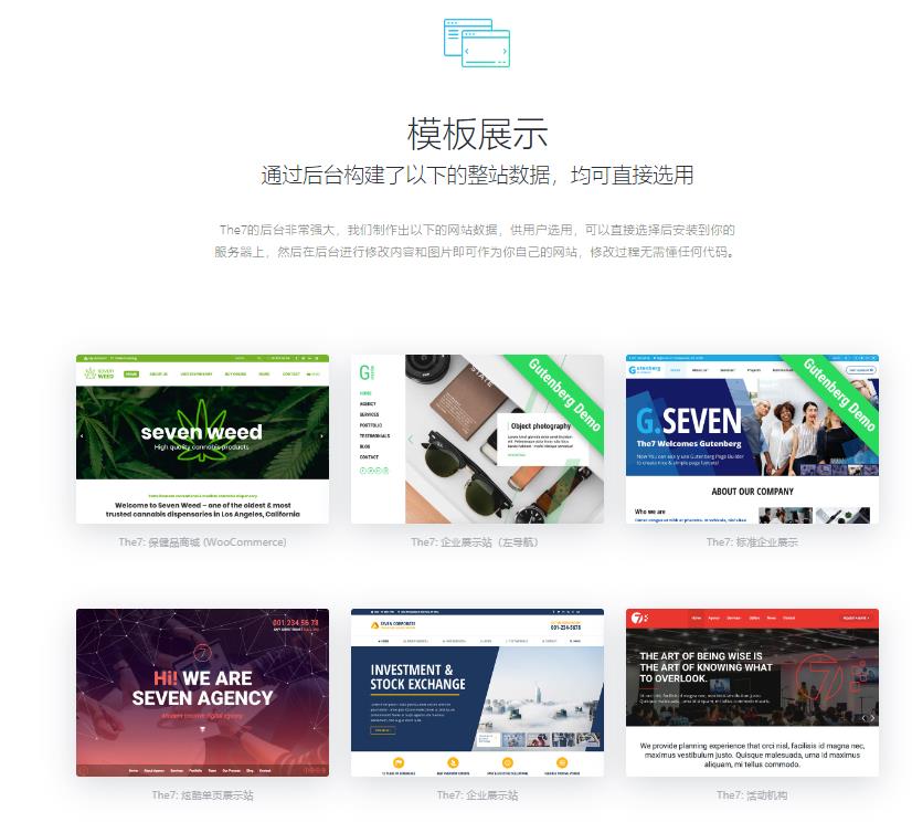 包含插件:Visual composer可视化前端编辑器、Ultimate_VC_Addons交互特效插件、Revslider幻灯片、Layerslider层幻灯片、pricing价格表单、woocommerce电子商务、云典编辑器拓展等插件。