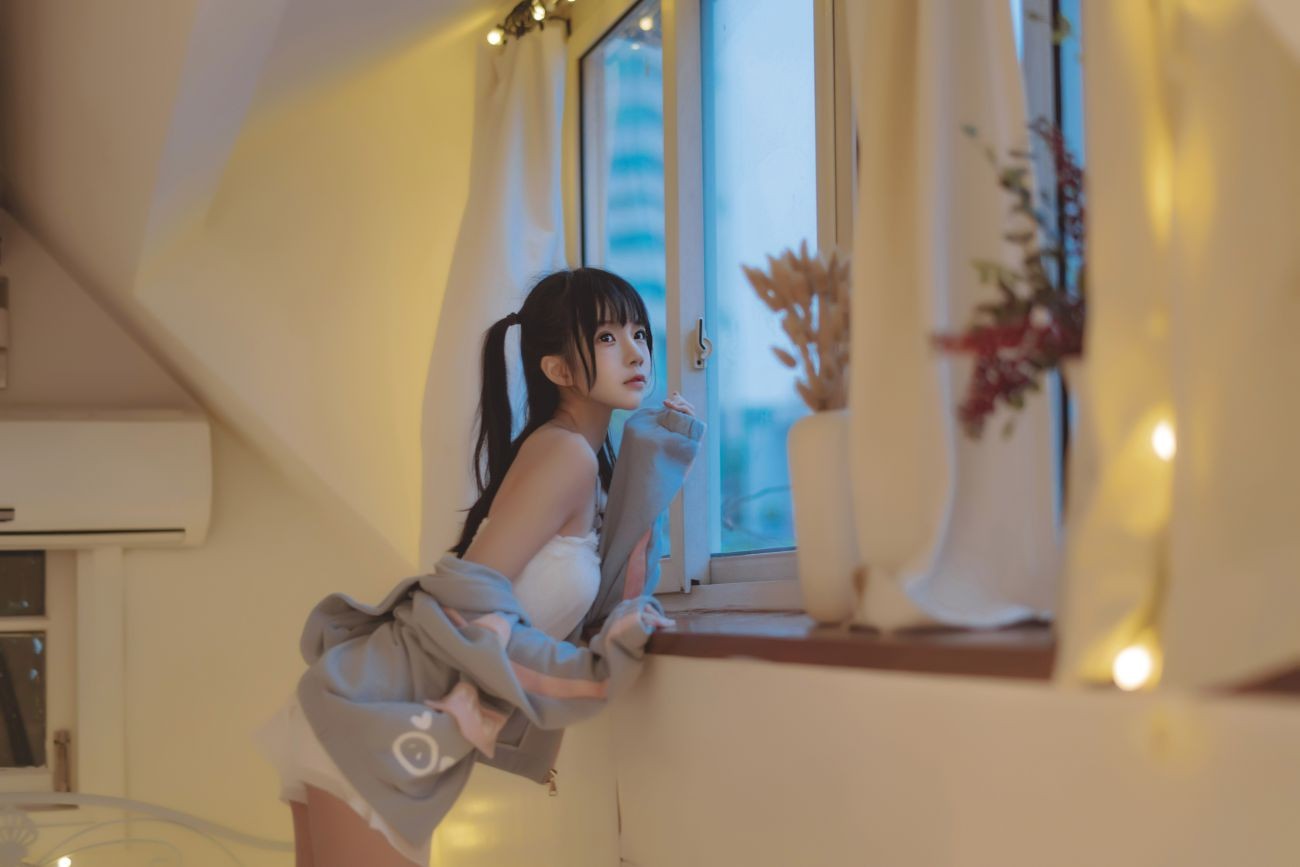 这篇文章介绍了一幅名为“甜甜的出现一下”的插图作品,属于桜桃喵的“碎星”系列。画面描绘了一位年轻女性身着浅色连帽卫衣,帽檐轻覆额前,黑发垂肩,眼神柔和直视镜头,嘴角微扬显露甜美。她双手轻拢帽绳,姿态自然放松,背景采用暖色朦胧光线,营造出温馨静谧的氛围。整体形象清新甜美,与标题高度契合,传递出温柔惊喜悄然降临的视觉效果。