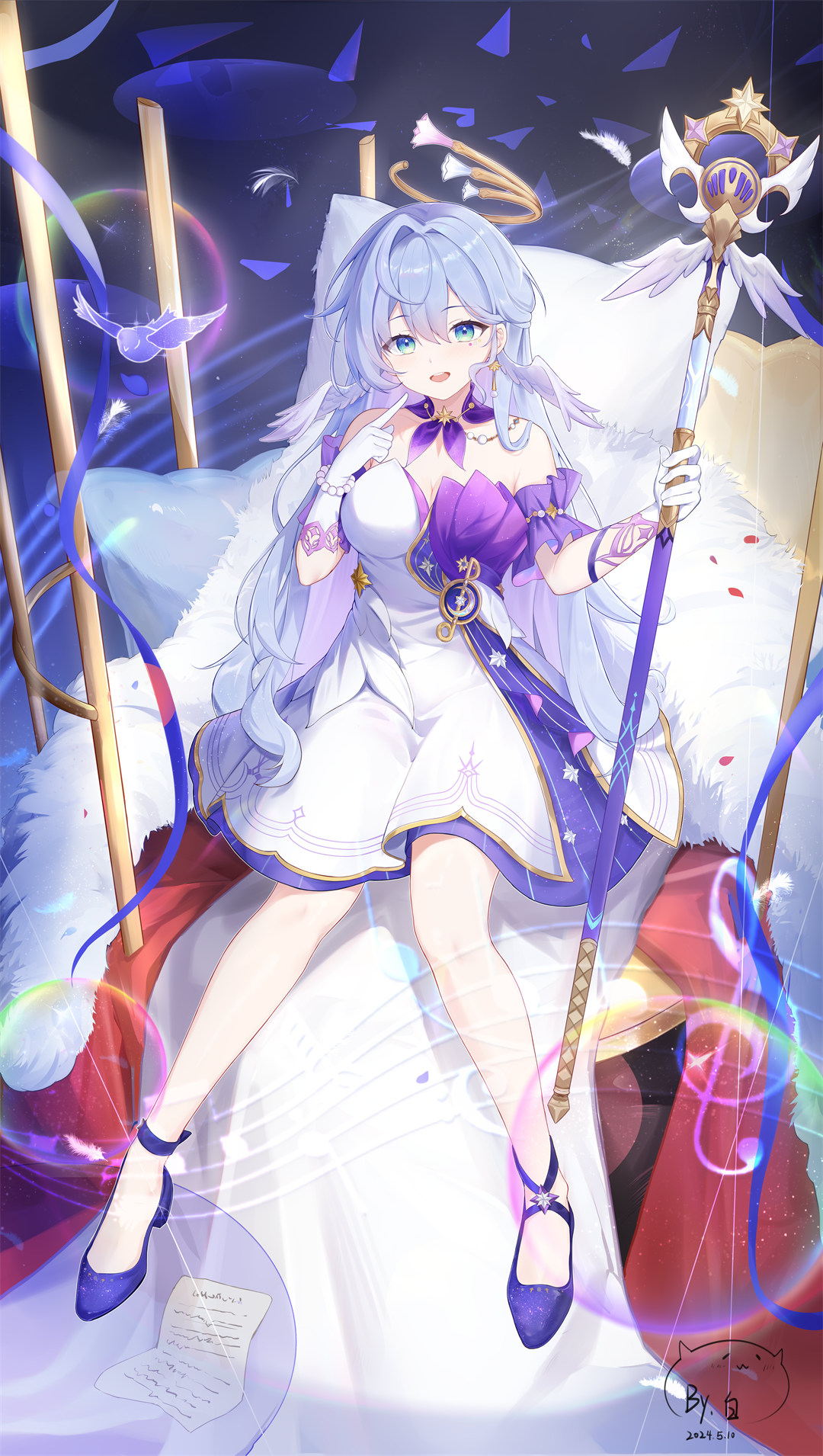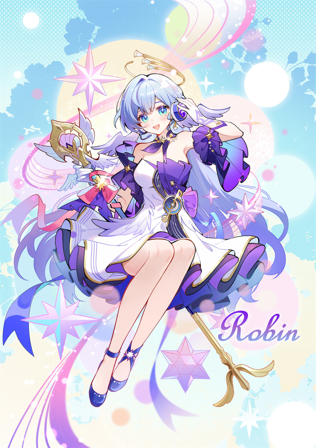 本文展示一张推荐的动漫壁纸,描绘了崩坏:星穹铁道中的知更鸟角色。她身着紫白相间的华丽礼服,头戴羽翼装饰,立于奇幻舞台中央,周围漂浮音符与机械装置,背景隐约可见城市轮廓。画面整体传递出在艰难环境中保持优雅与希望的核心氛围,呼应标题“尽管眼下十分艰难,可日后这段经历说不定就会开花结果”的深刻寓意,象征着纵处逆境终将绽放光芒。