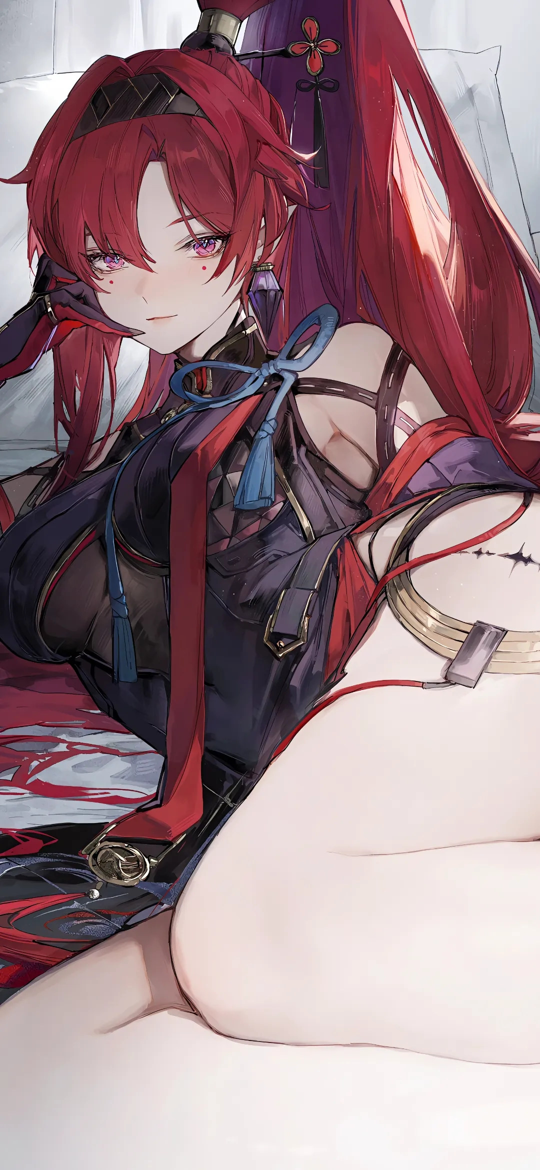 在游戏《崩坏:星穹铁道》的角色描绘中,姬子以其鲜红色长发、紫色眼眸和黑红相间的紧身战斗服为特征,肩部装饰蓝色丝带。画面呈现她侧卧于地的姿态,表情疲惫落寞,眼神忧伤,整体氛围静谧哀婉。这一艺术表达深刻呼应了标题“可惜最后我们只剩下大梦一场”所传达的遗憾与虚幻情感,突显游戏角色设计的深度与情感基调。