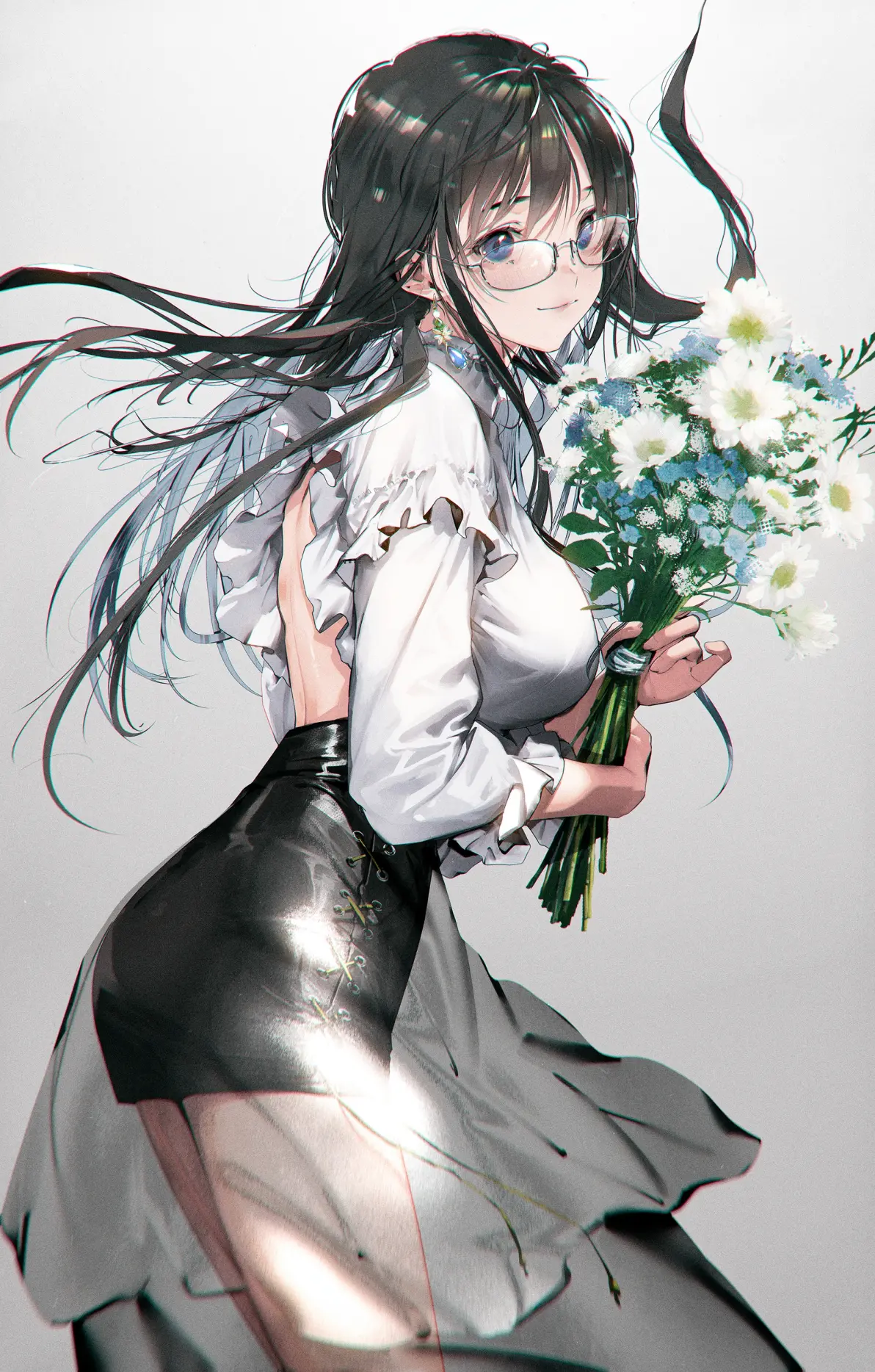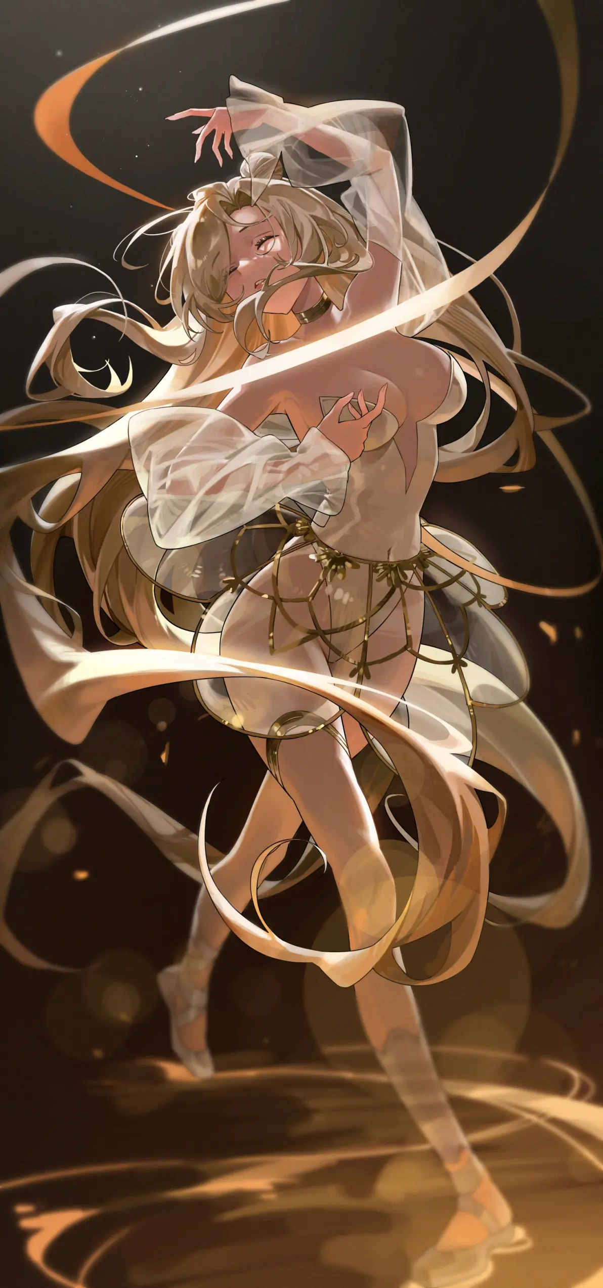 透视装插画特辑聚焦半透明材质在插画创作中的艺术表现。蕾丝、塑胶等不同材质通过透明效果展现独特视觉魅力,呈现细腻优雅的质感。示例作品描绘银发蓝瞳女性角色身着深棕色蕾丝透视装,搭配黑色长手套与过膝袜,在暖色调背景中展现略带羞涩的妩媚姿态。场景点缀紫色玫瑰与烛台,整体氛围浪漫唯美,突显服装透视质感与角色优雅气质的完美融合。