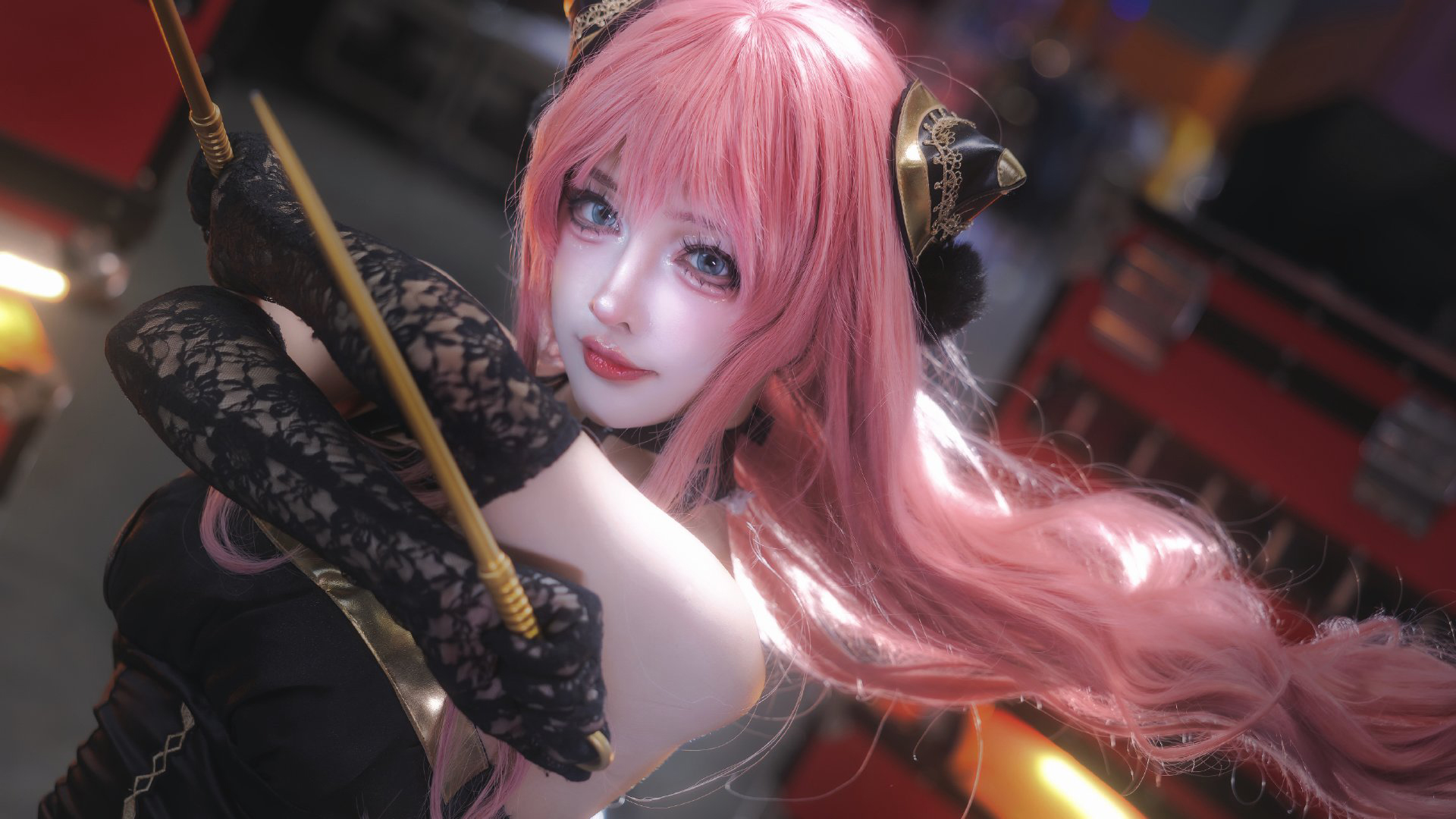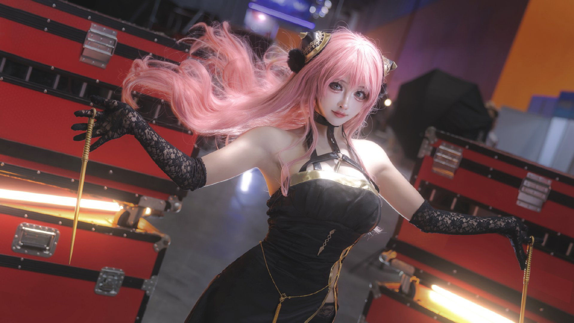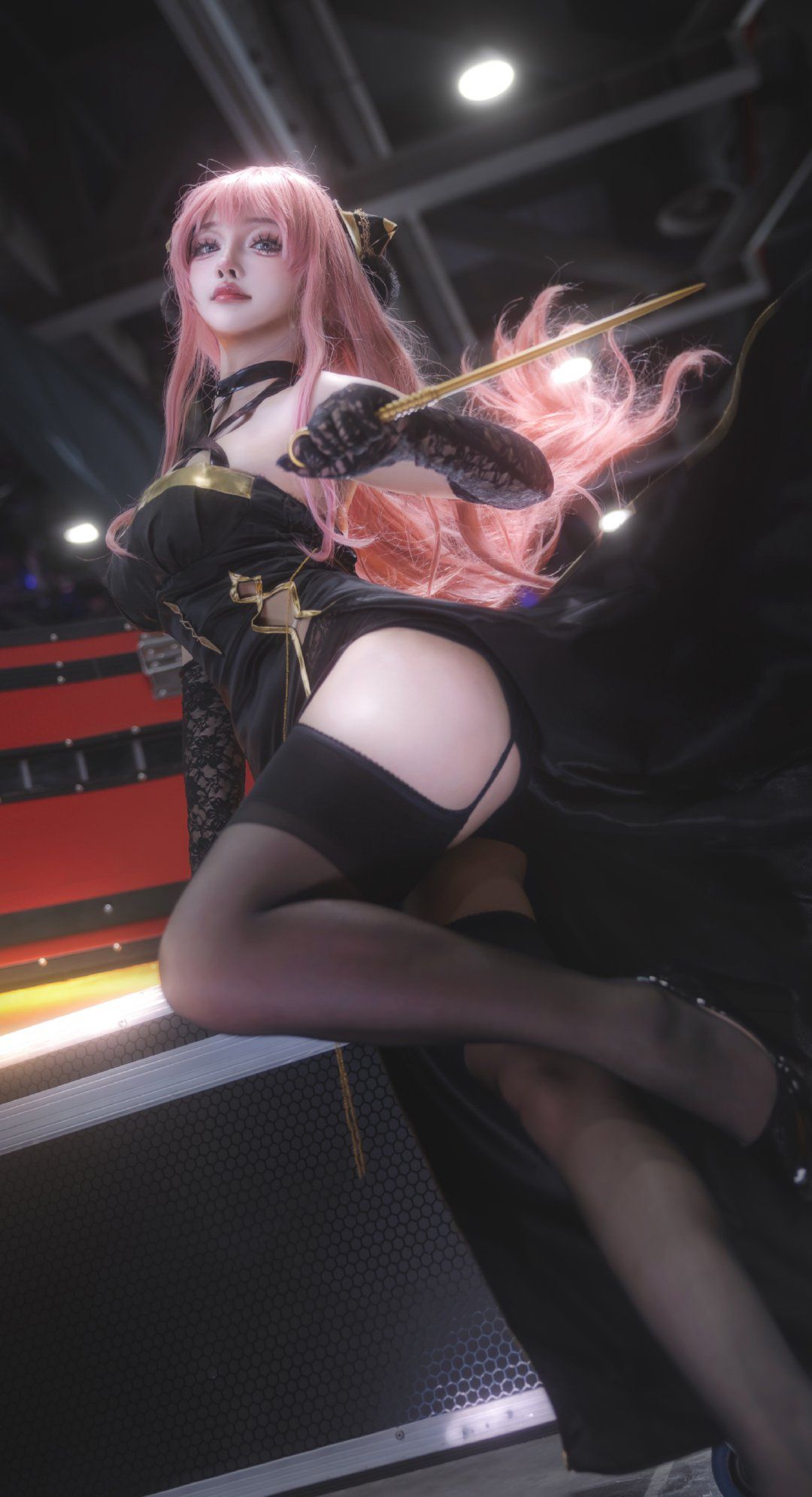教主Shadow拍摄了COSer只是简言扮演的《间谍过家家》中成年阿尼亚角色照片。画面呈现一名粉发少女身着黑色紧身战衣,摆出战斗姿态,长发飞扬,眼神坚定期待;背景为红黑机械舞台,灯光映衬其动感身影。作品主题“追逐的不是别人,是你自己满怀期待的心”突出内心渴望的共鸣与行动回应,展现自信力量瞬间,而非对抗外敌。