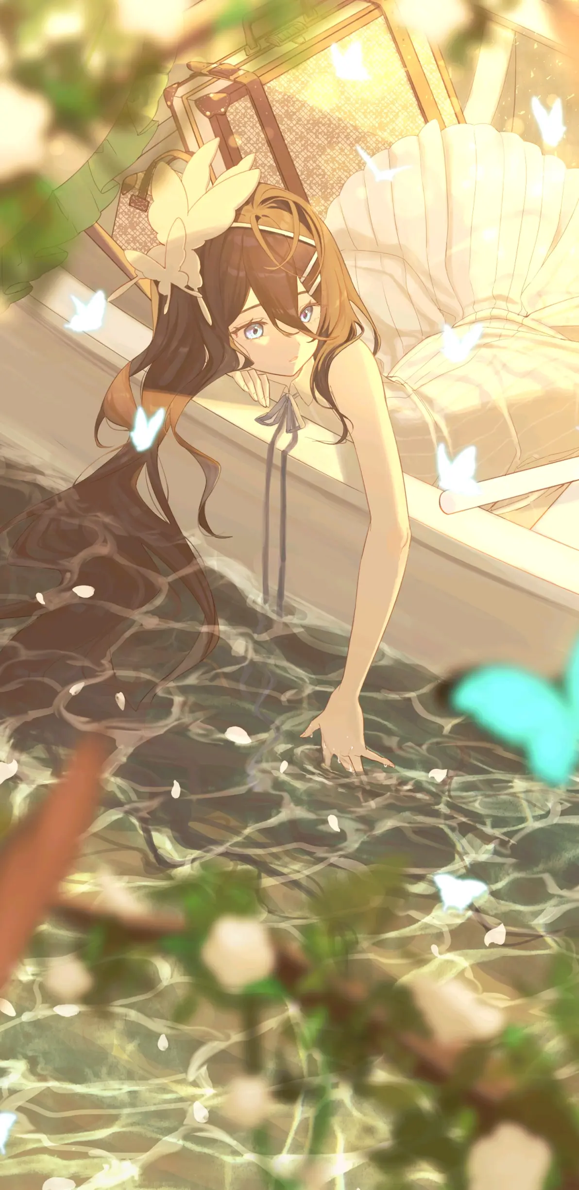 船舶插画特辑以水波荡漾之美为核心主题,描绘了水边景色的艺术魅力。画面展现一条被水淹没的狭窄街道,右侧金发少女身穿蓝色连衣裙,手持饮料立于水边,表情缥缈。街道中央,小船载着红发角色在水中穿行。周围日式风格的建筑和霓虹招牌在水面形成倒影,光影交错。细腻的描写,如角色表情和水面反射,营造出宁静而略带奇幻的氛围,呈现城市被水覆盖的独特美感,吸引观赏者视线。