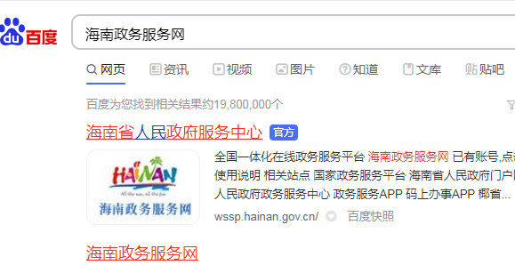 首先我们百度打开<<海南政务服务网>>官网