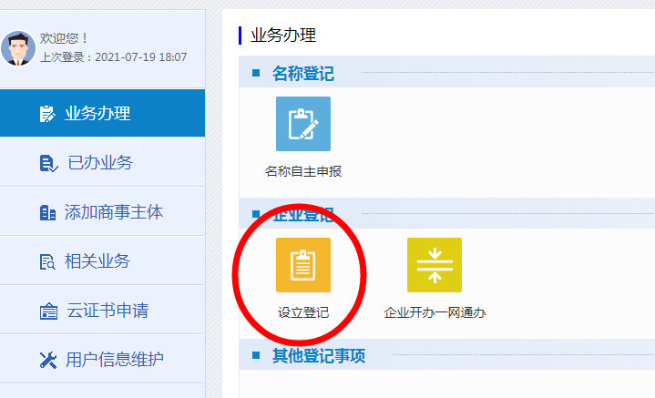 在上图点蓝色字体进入链接然后签名即可拿到电子证 返回首页点击企业开办一网通进去后点击立即办理即可看到证书