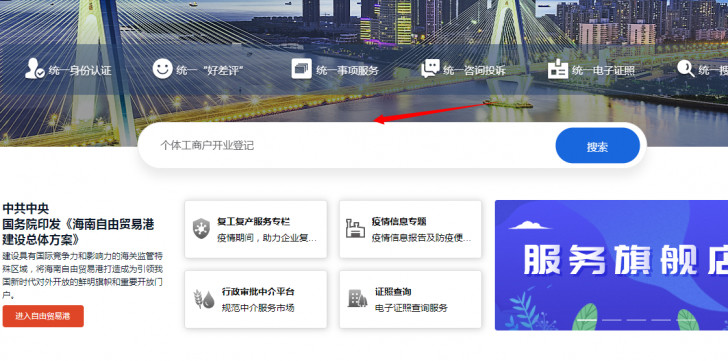 接着在首页输入“个体工商户开业登记”,然后点搜索。