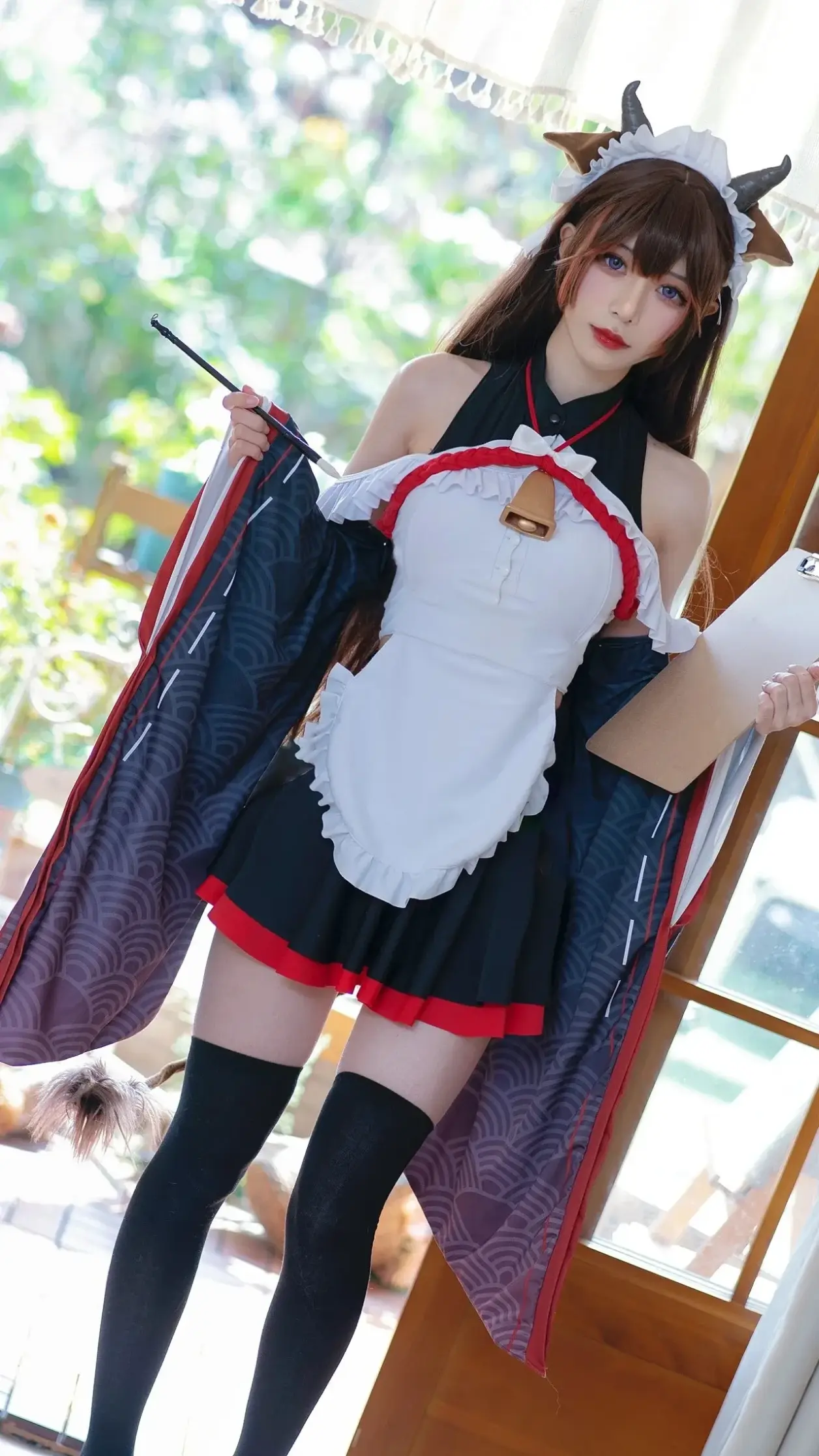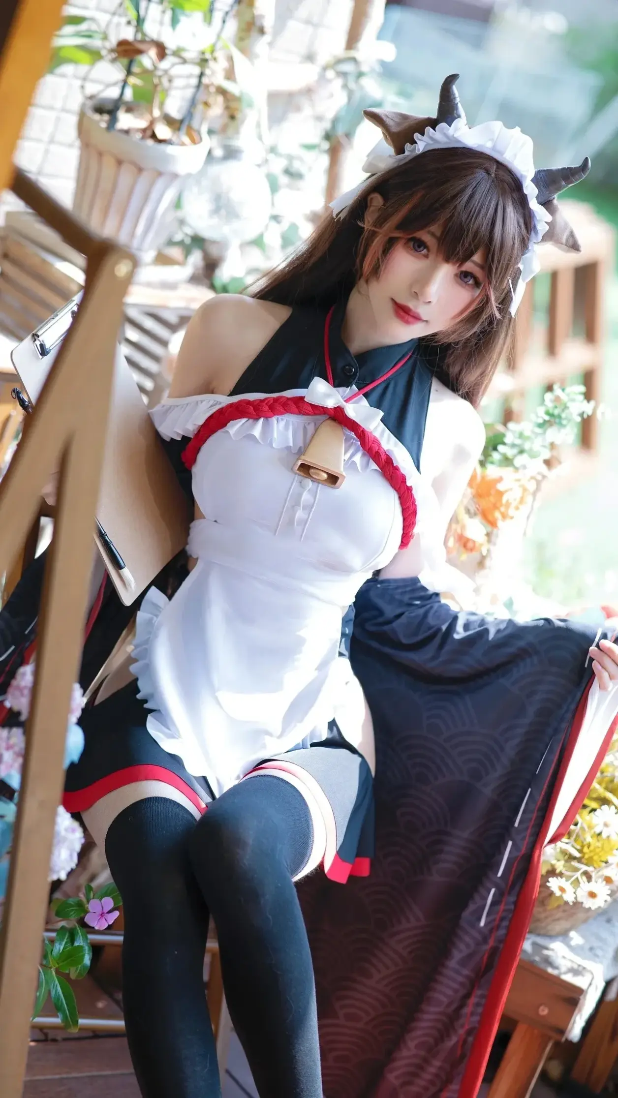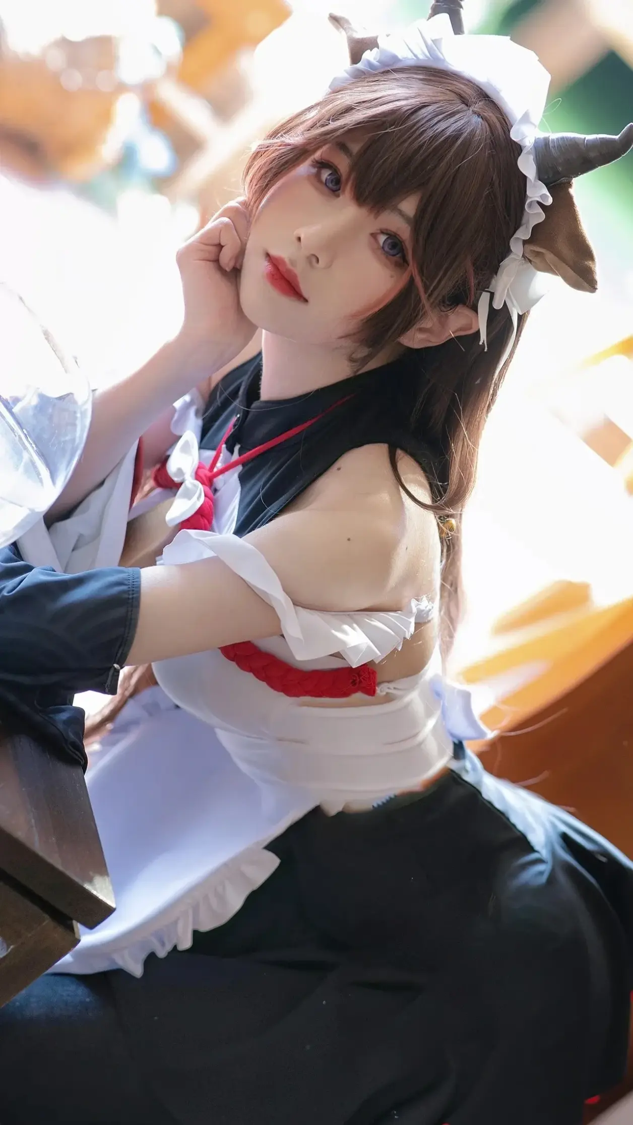 本文展示了一组主题为“黑丝可爱牛牛女仆”的图片。图片中的女性角色身着经典女仆装,其特色在于融合了黑色长袜与可爱的“牛角”头饰元素,营造出俏皮甜美的视觉效果。角色姿态优雅,眼神温柔,整体氛围突出了萌系女仆的可爱形象。