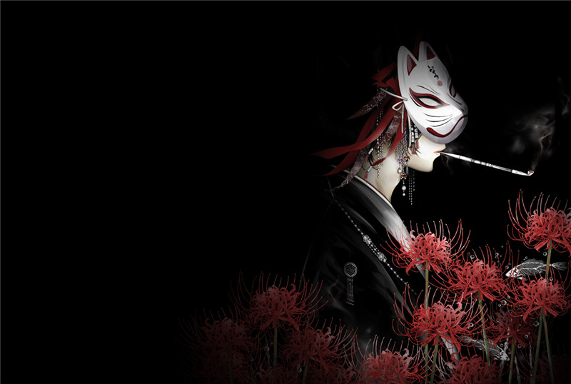主题:动漫日系狐面狐狸面具人物插画横竖壁纸原画卡通美术绘画图片素材