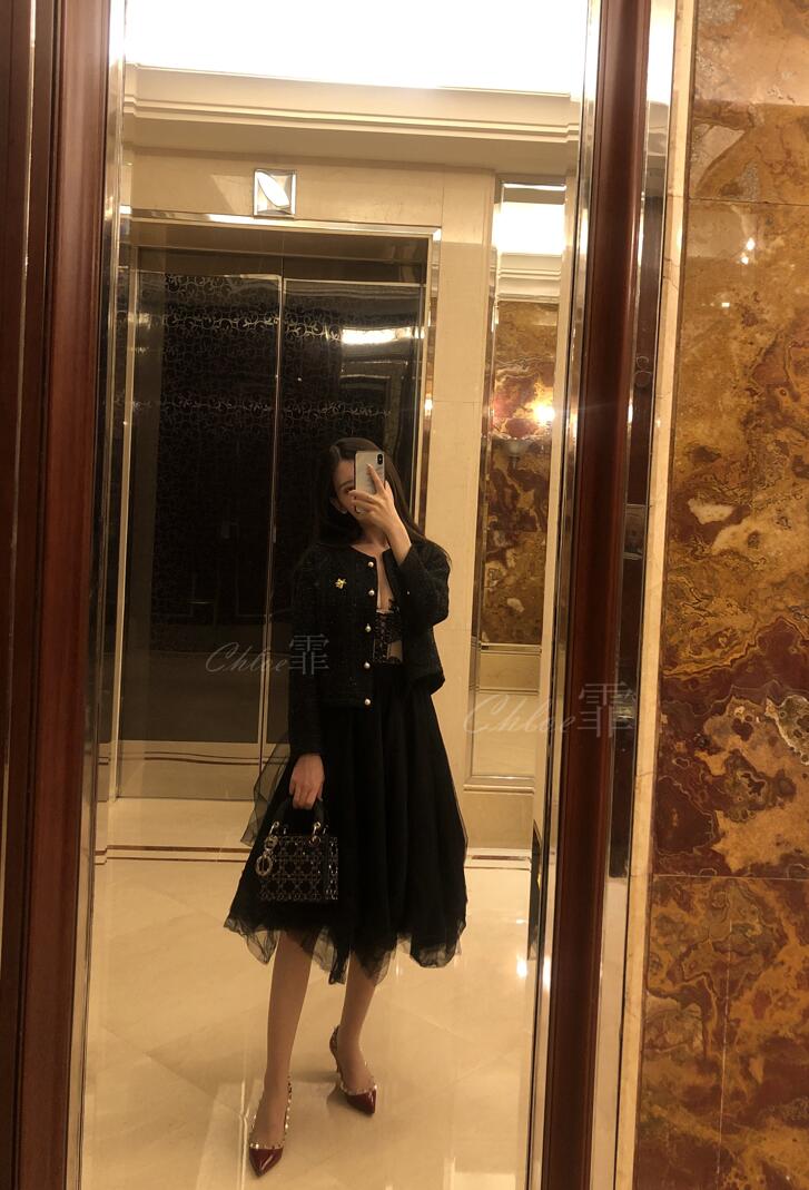 NO.14 20190302名媛风女神气质黑色吊带裙外套黑高跟鞋德国FALKE肉s