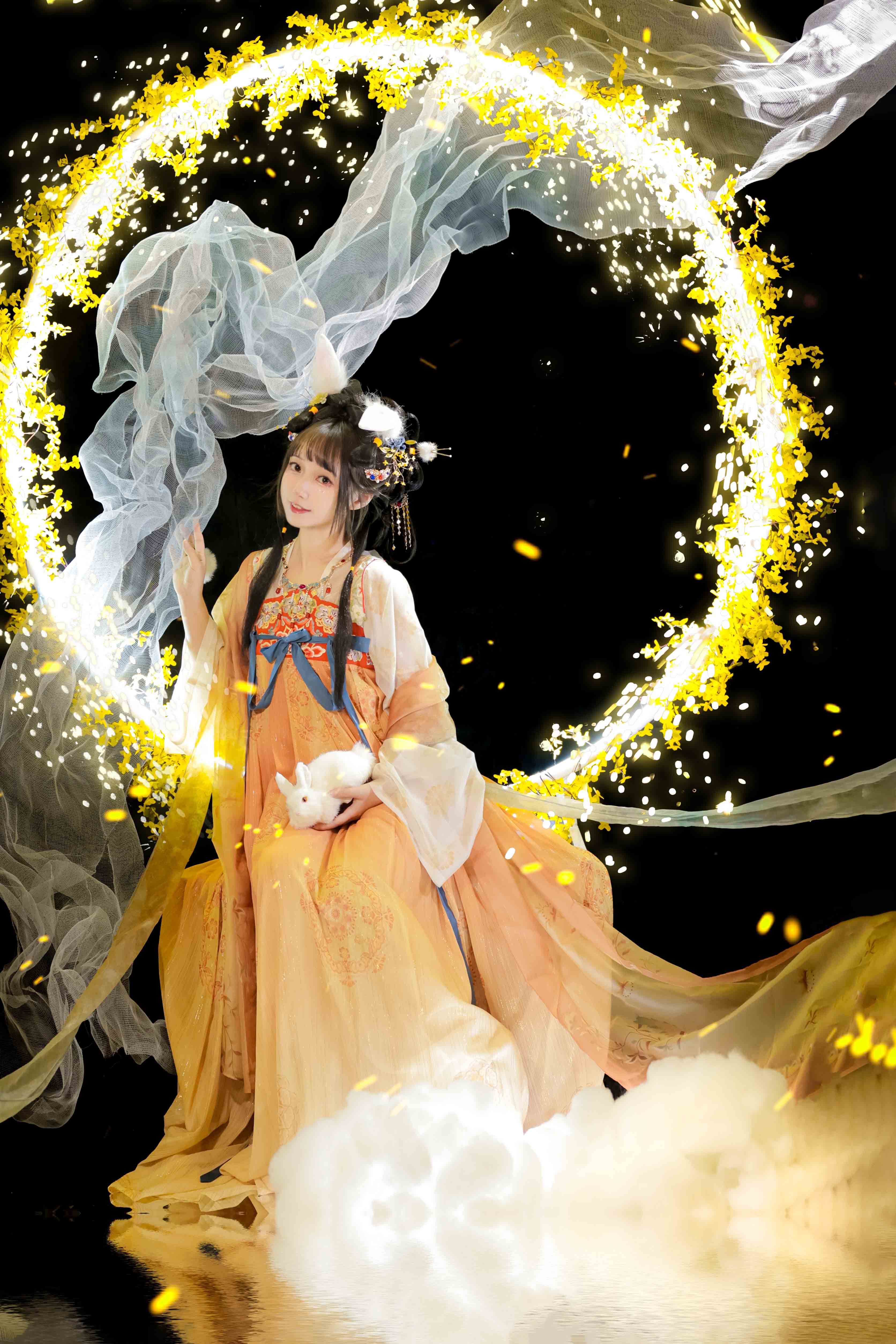 本文呈现了一幅创意摄影作品,由千莫担任出镜人物,拍照的小雪糕负责摄影,秦纾进行发型设计。作品主题围绕"下凡饿了…能去你家吃口月饼吗,就亿口"的轻松场景,展现出对月饼的趣味渴望与幽默氛围。