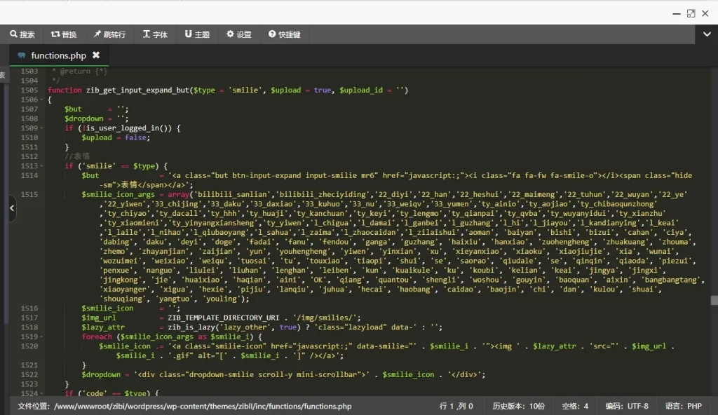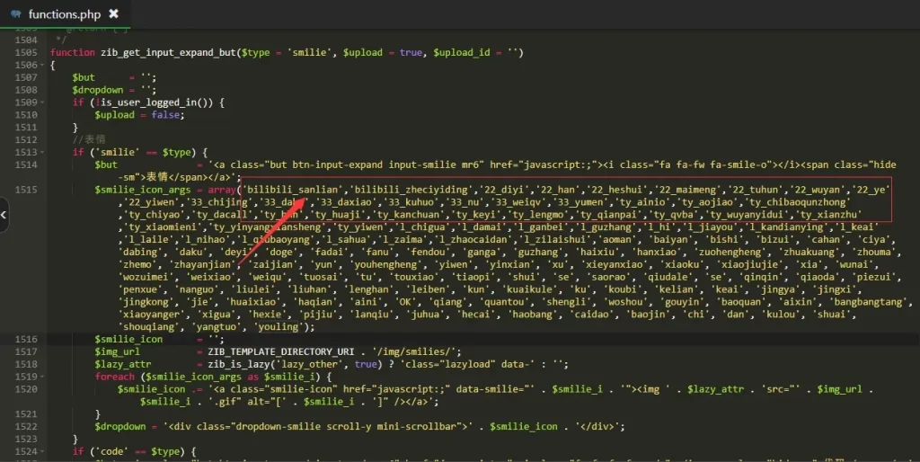找到/wp-content/themes/zibll/inc/functions/文件夹,打开你的functions.php,并来到第1515行