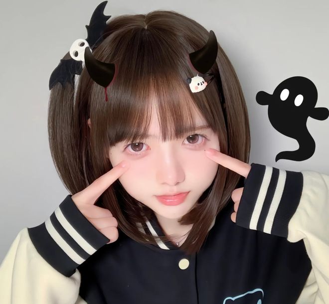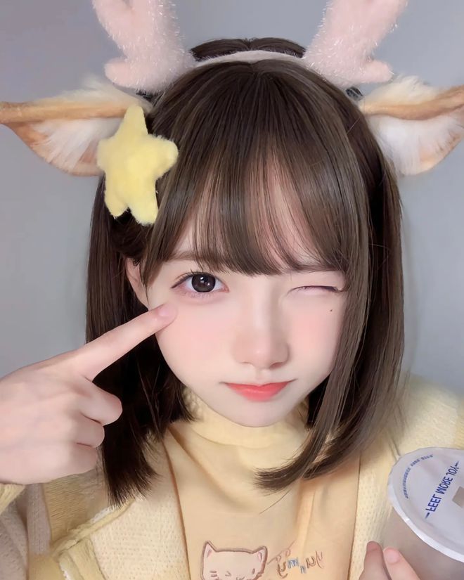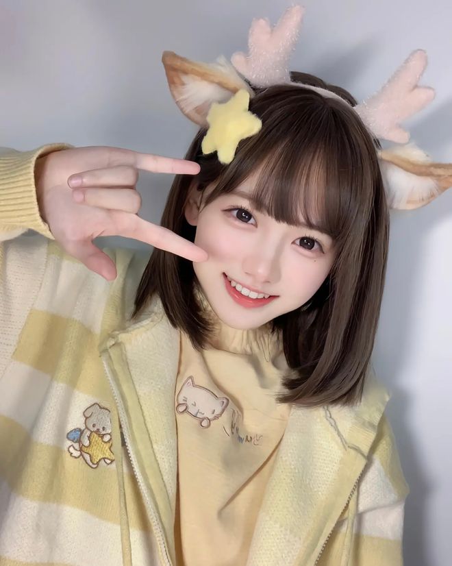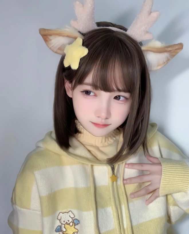 网红"一只妖妹"是一位以可爱风格著称的武汉籍网络红人。她身高150cm,体重37kg,在抖音平台的账号为DYID:seoyoung707。其形象特征包括标志性的深棕色长发、齐刘海造型,常佩戴白色猫耳发饰,整体呈现清新萌系风格。照片中她身着浅蓝色牛仔外套搭配格纹围巾,左胸点缀卡通图案,通过右手托腮的姿势展现甜美温柔的气质,完美契合"超级可爱萌妹"的定位标签。