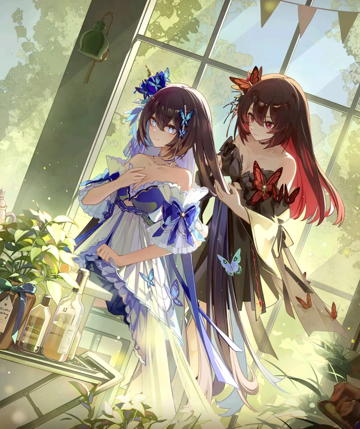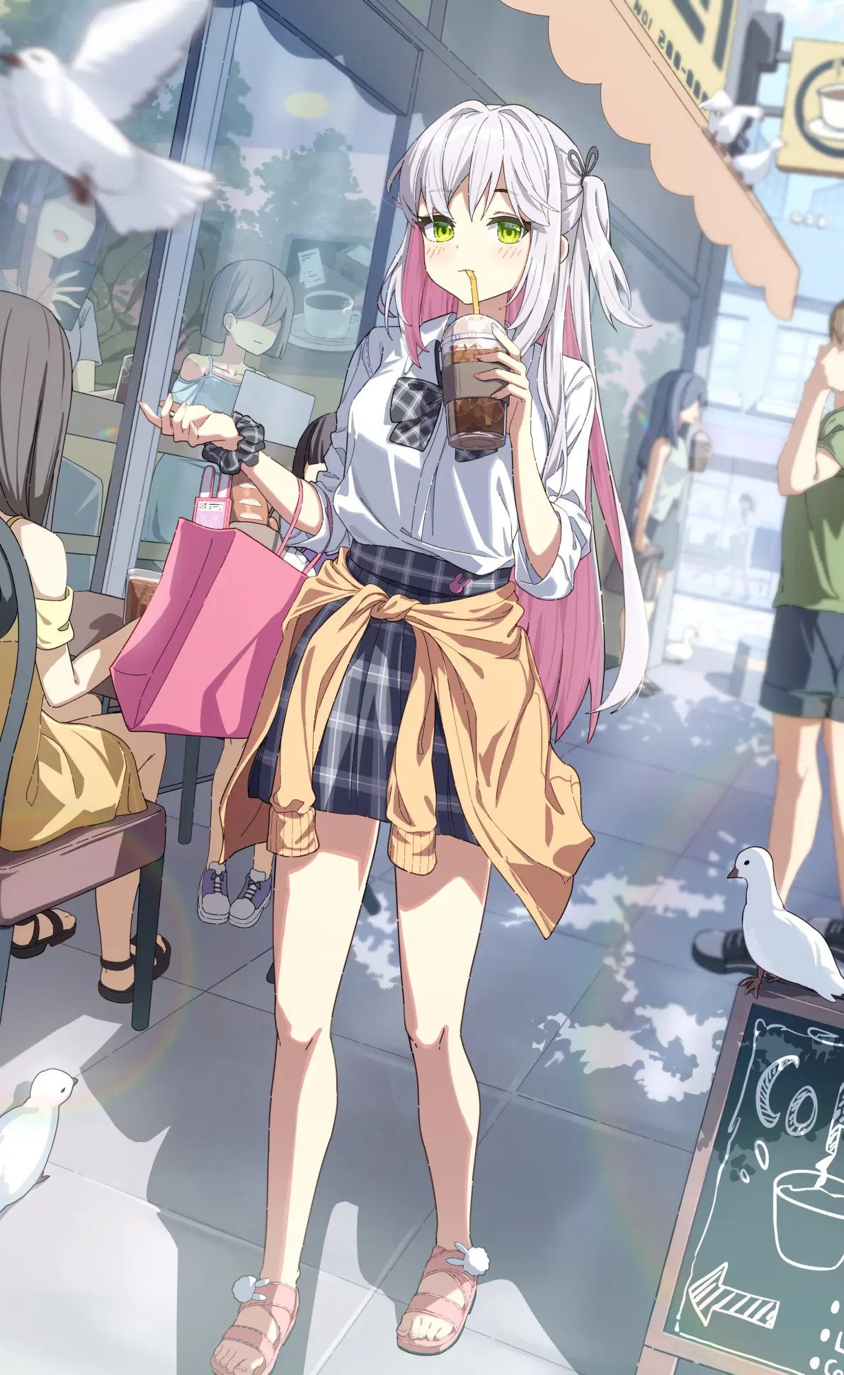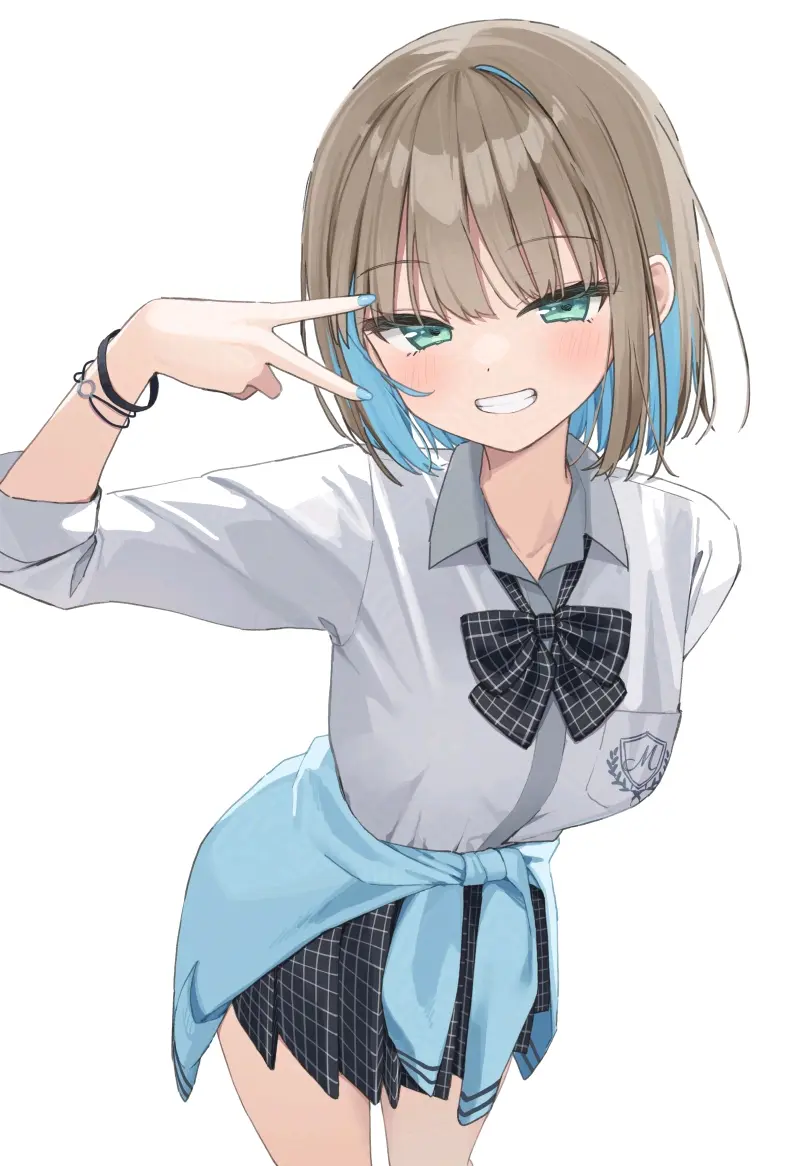 内层挑染是一种发型染发技术,通过在头发下层染上与基底不同的颜色,创造出鲜明对比效果,从而增强时尚感和个性魅力。本篇插画特辑以动漫风格展示这一概念,描绘了两位女性角色:左侧角色拥有银白与粉色渐变长发,身穿白色连帽卫衣,面带笑容;右侧角色同样有银白与粉色挑染发色,扎着双马尾,身着深蓝色校服外套、白色衬衫、红色领结及格纹短裙,手持棕色手提包。整体画面呈现青春校园氛围,突显了鲜艳色彩在若隐若现间的视觉冲击力。