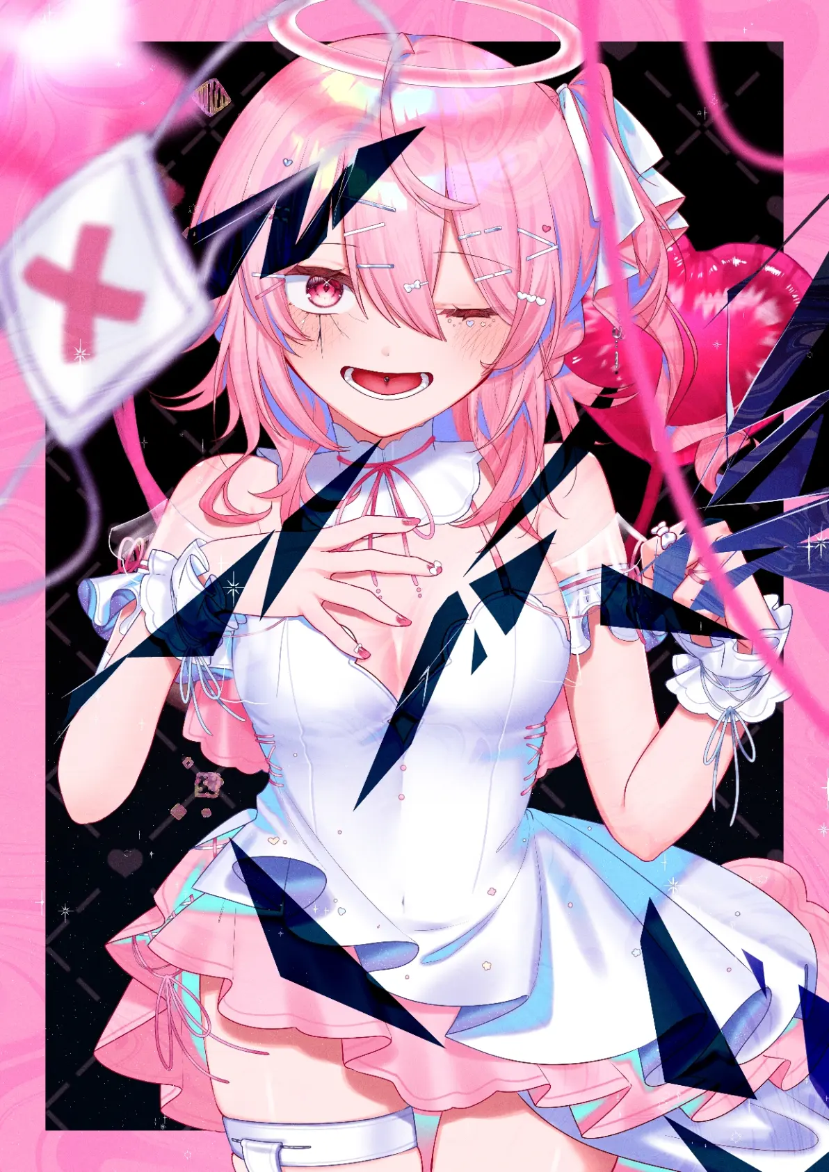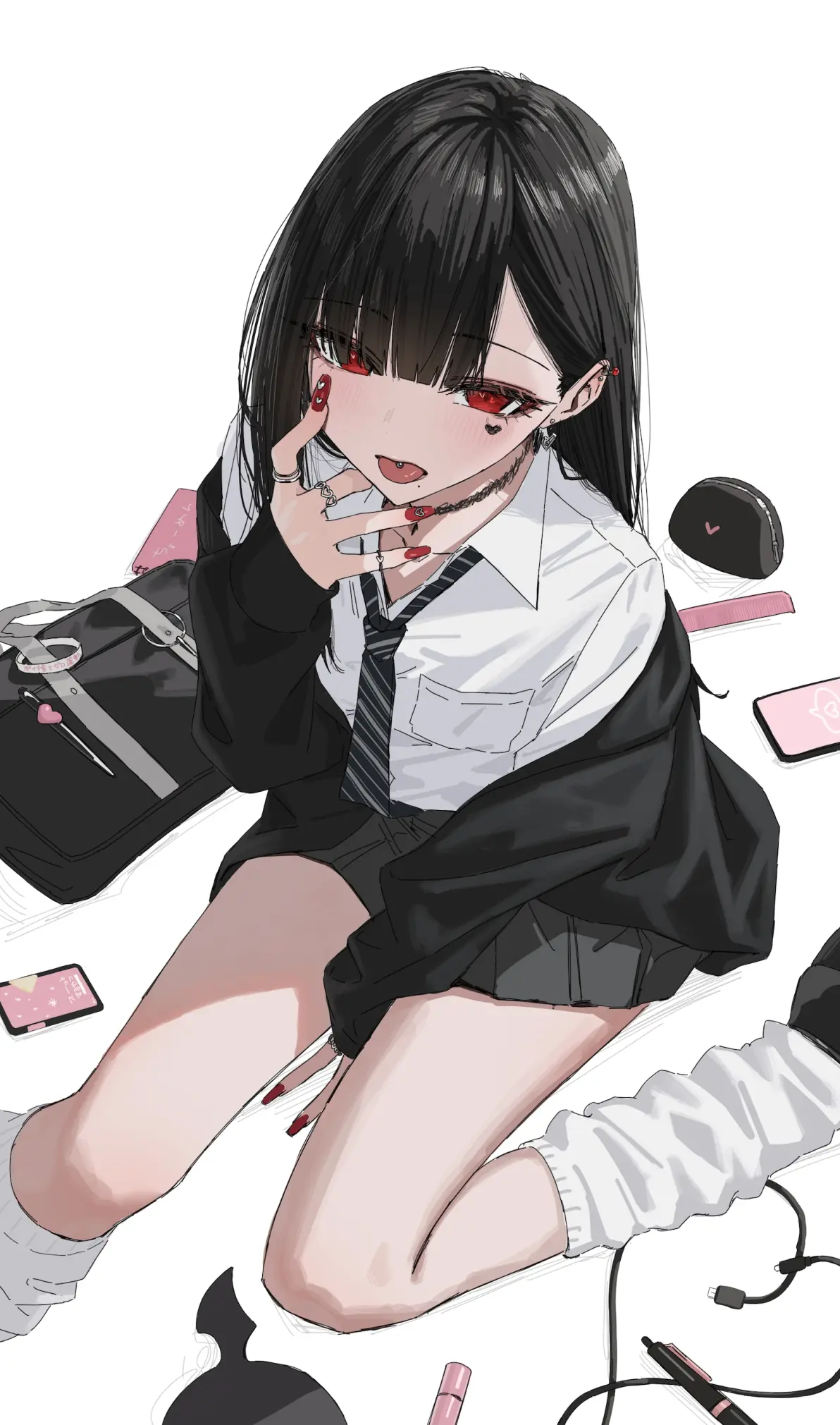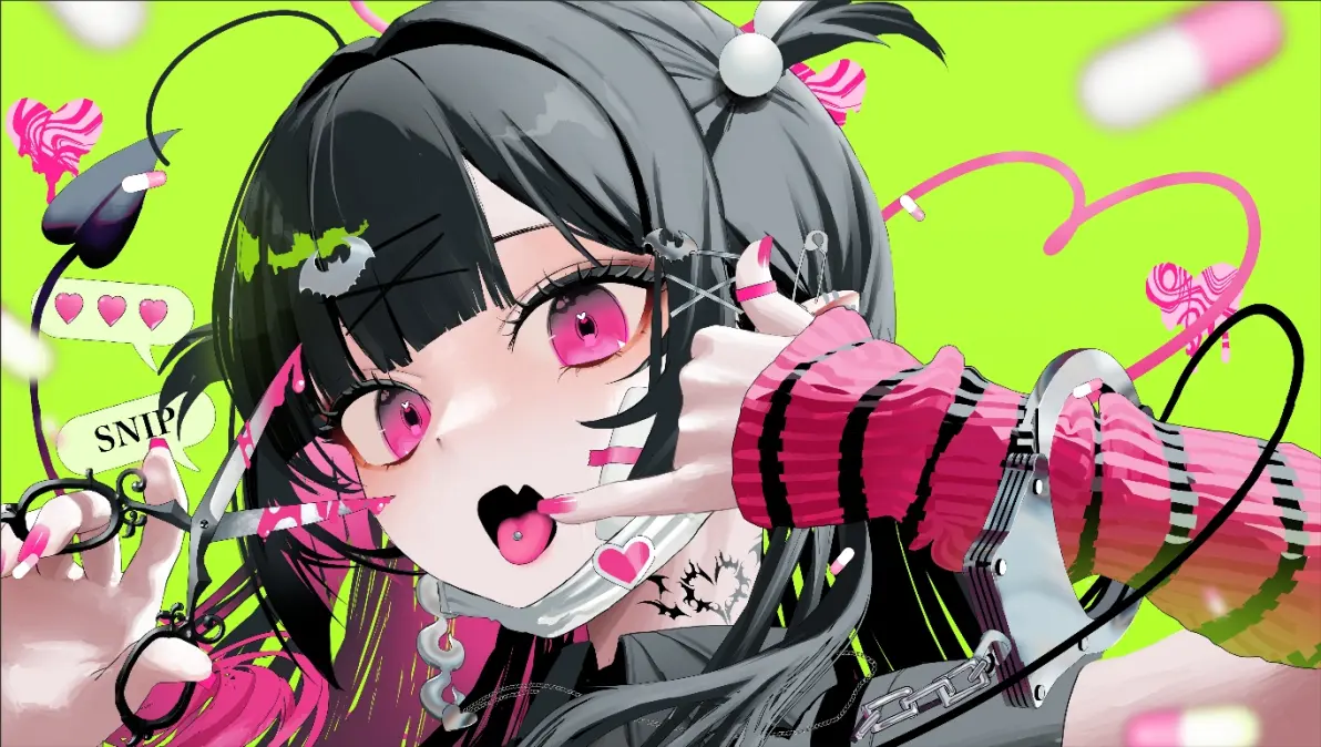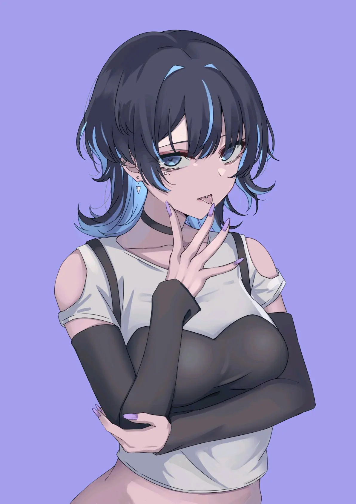 舌环作为隐藏式饰品,在张口时不经意显露的特性赋予其独特魅力。本次插画特辑以绿发戴红色细框眼镜的女性角色为主体,通过黑色项圈配心形吊坠、露肩上衣与绿色外套的穿搭组合,配合右手触颊的俏皮神情,在浅蓝绿色几何背景中生动诠释了舌环的时尚个性。作品整体呈现动漫风格,突出隐秘饰品带来的视觉吸引力。