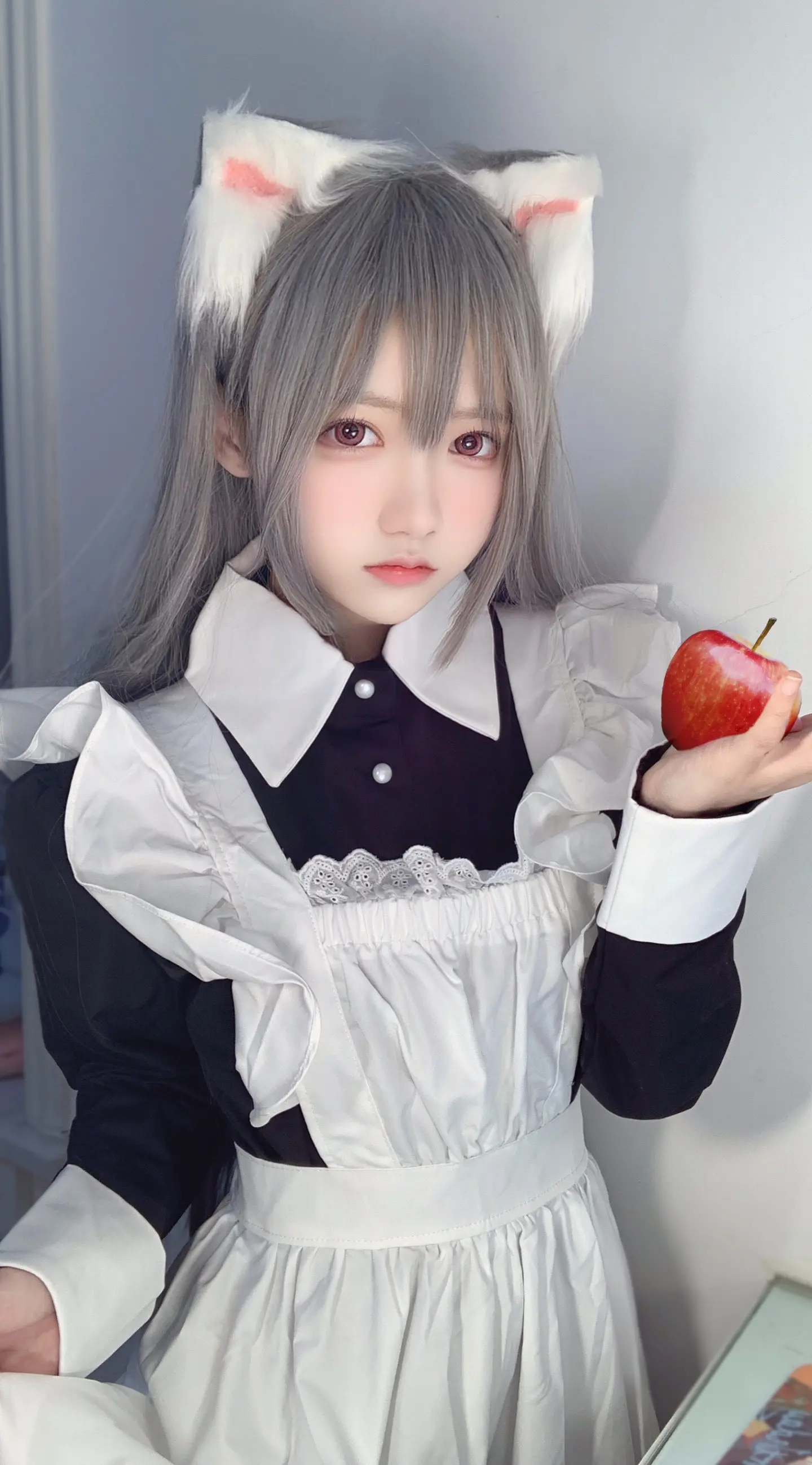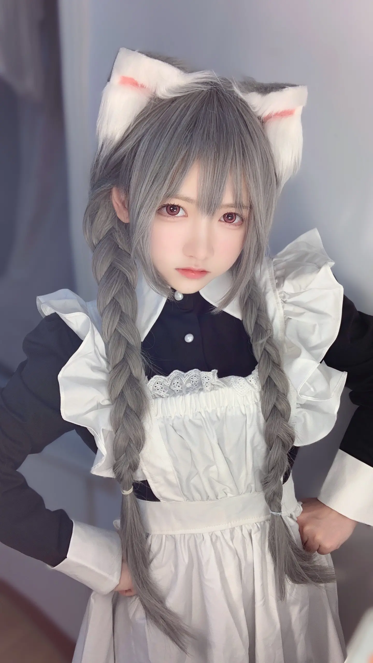 网红女神一只妖妹来自湖北武汉,身高150厘米,体重37公斤,在抖音平台账号一只妖妹(DYID: seayoung707)分享动漫角色扮演内容。她近期以菲奇子形象出现,身着黑白女仆装,佩戴白色猫耳头饰,留有银灰色长发,通过表情娇嗔和右手轻触脸颊的姿态传达独占欲。这一角色扮演呼应了标题对菲奇子的个人占有宣告,暗示因大众喜爱药指角色而强化了菲奇子的独占感。
