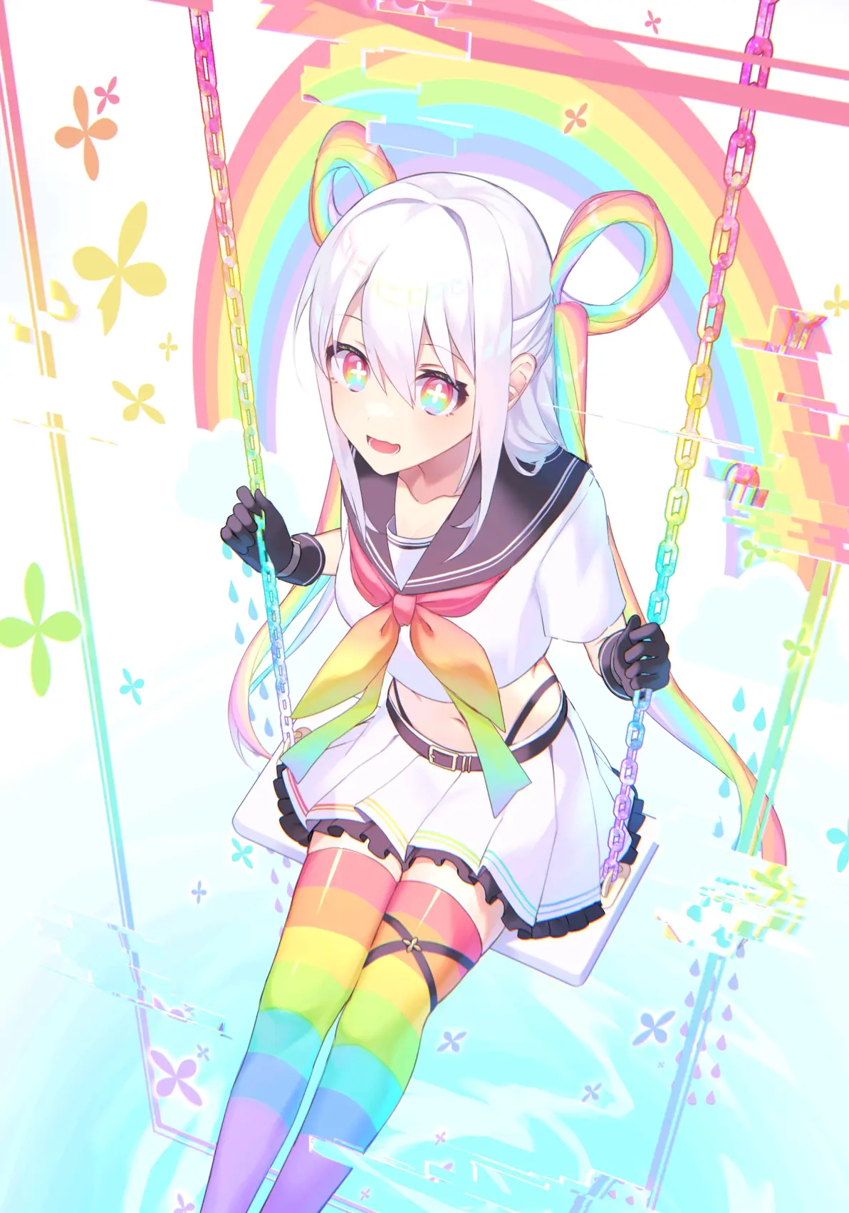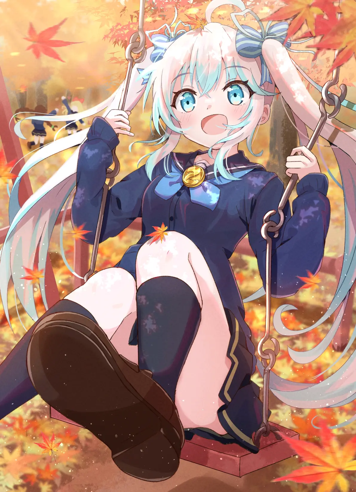 秋千承载着童年回忆,具有神奇的情绪疗愈效果。本期特辑聚焦秋千主题的插画创作,其中一幅代表性作品呈现银蓝色长发少女身着深蓝色水手服,在枫叶飘落的秋日场景中荡秋千的动态瞬间。画面通过人物后仰抬腿的姿态和兴奋表情,生动捕捉了秋千摆荡的快乐瞬间,橙红色背景营造出温暖活泼的秋日氛围,完整展现了秋千带来的纯粹愉悦体验。