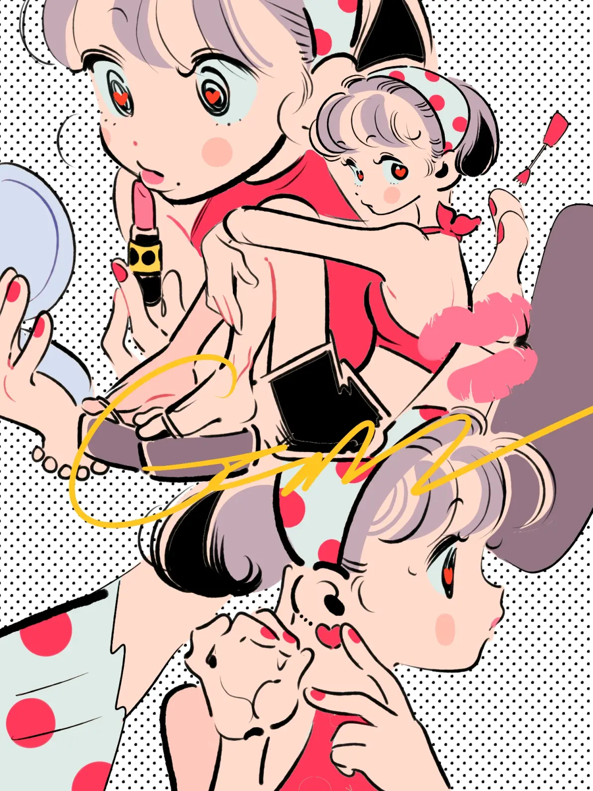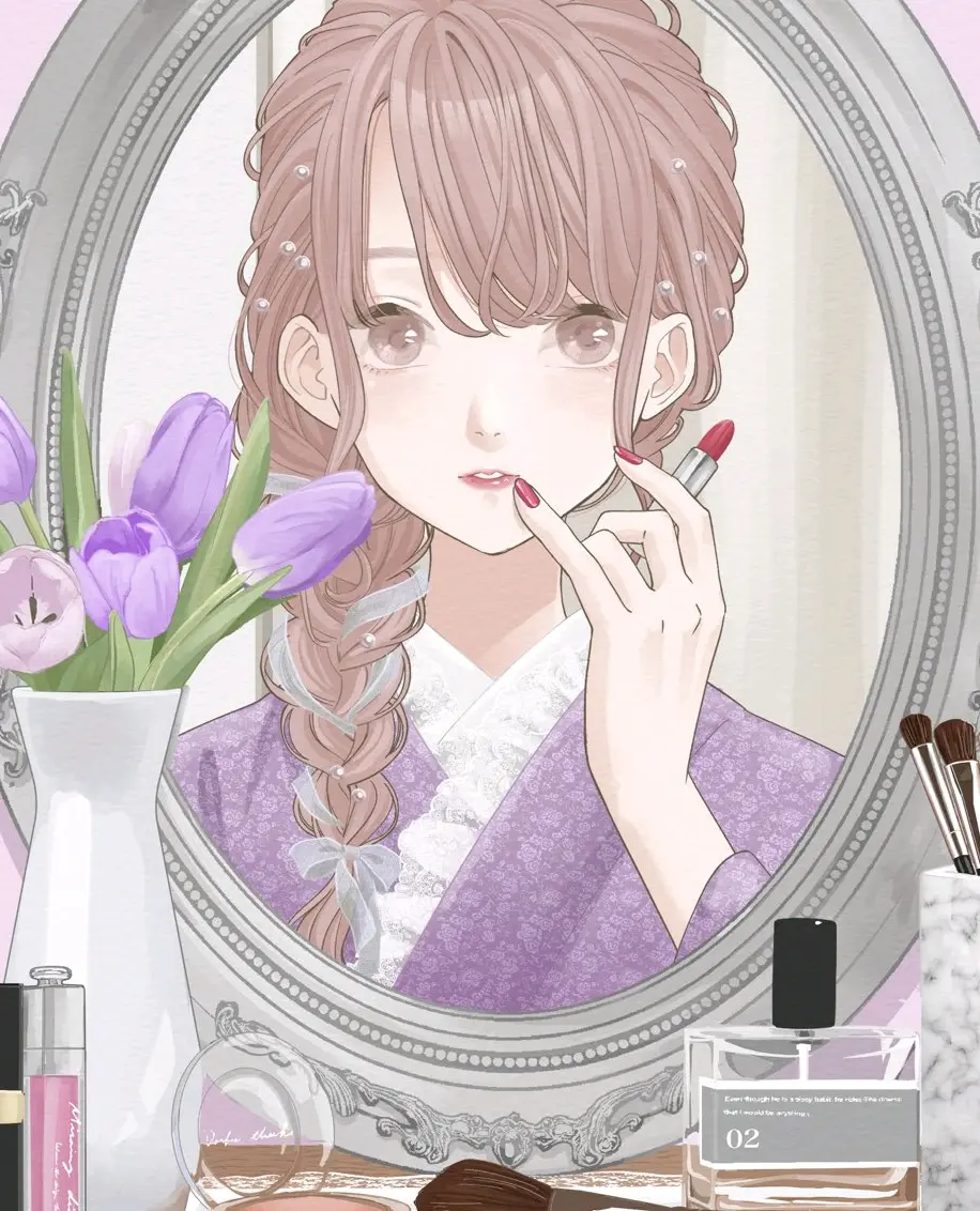 口红作为化妆中的首选单品,常被许多人视为唯一使用的化妆品,因其能有效滋润双唇、增添自然红润,显著提升整体气色并散发魅力。本次插画特辑通过描绘一位银发女性在金色镜子前专注涂抹口红的室内场景,生动体现口红如何改善外观的主题,呼应了"好气色"的核心宣传点。