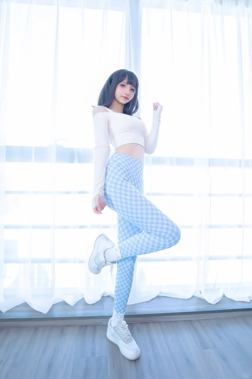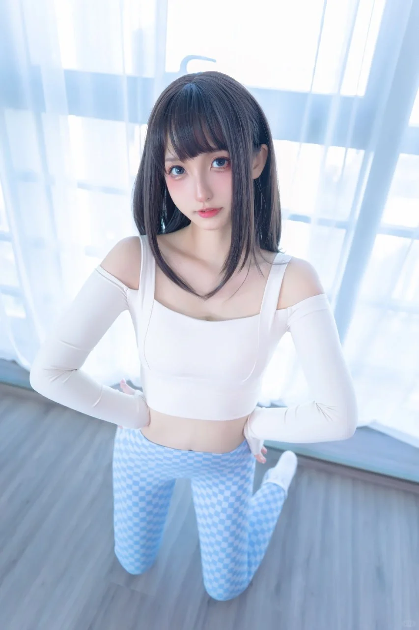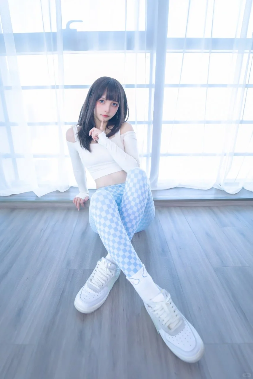 在这组“蓝白格”主题的Cosplay作品中,神楽坂真冬以一套蓝白格纹的服饰展现了她独特的风格。蓝白格纹的服装设计别具一格,仿佛是初春晨曦中的第一缕光线,为整个作品增添了一抹亮丽的色彩。