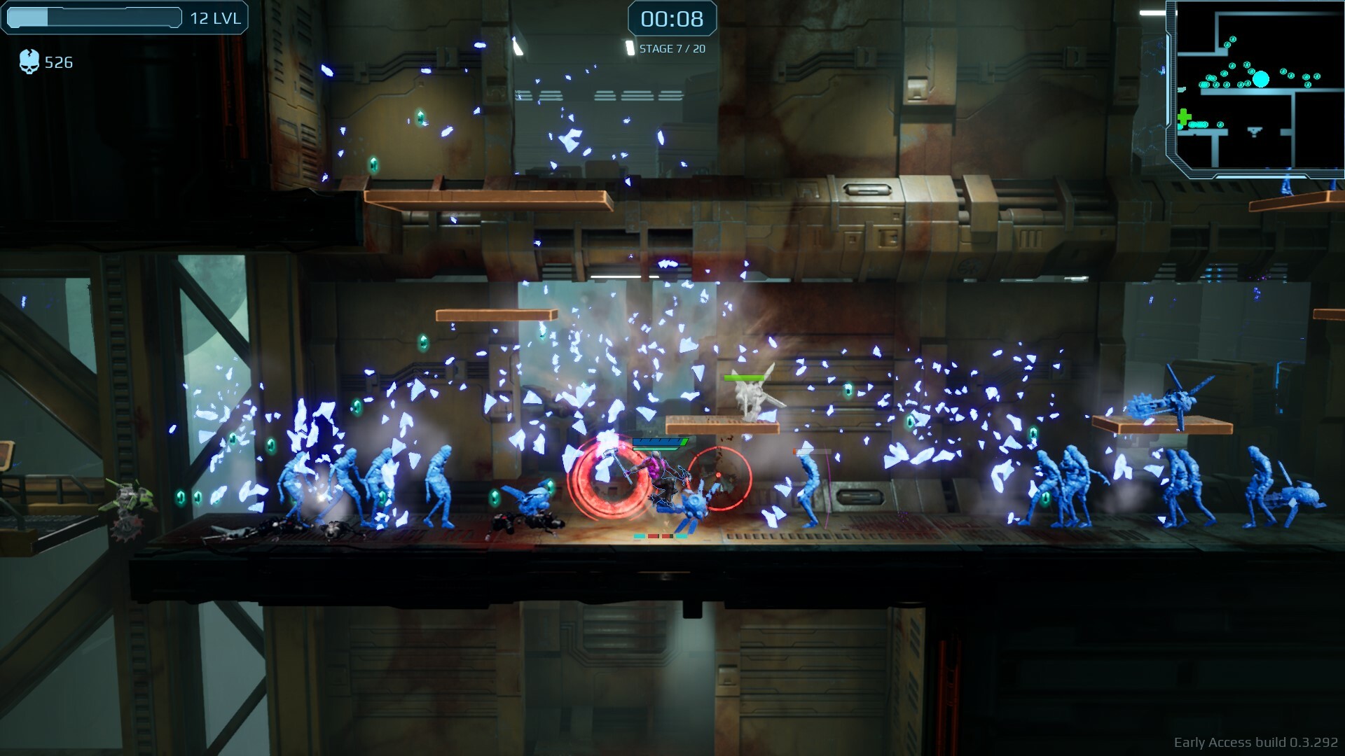 《肾上腺素狂潮》是一款平台类Roguelite游戏,玩家扮演一名士兵,最多可携带5种武器 ,与科技僵尸战斗。选择角色和技能,冲刺穿越太空城市,击杀丑陋的BOSS并生存下来。游戏设定在一个黑暗的科幻世界中