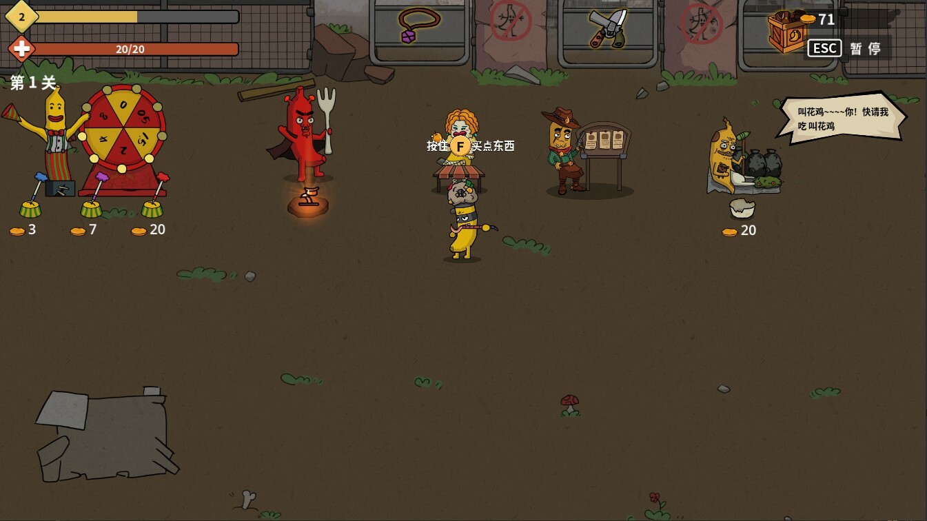 《香蕉兄弟》是一款类幸存者、生存rogue游戏。玩家扮演一个香蕉战士,携带百变多样的武器踏入食品加工厂,击杀拥有邪恶意志的副食品怪物,通过丰富的随机事件进行成长,不断变的更强,最终击败BOSS,取得胜利、拯救家园。