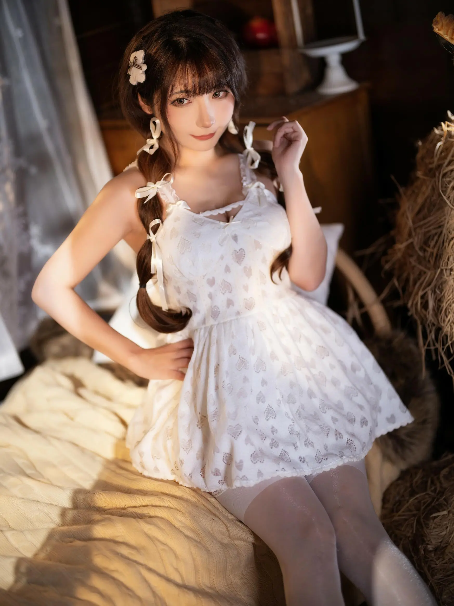 写真美图 25年12月3日 编辑 铃兰不响闪亮明星 取消关注 关注 私信 本文摘要: 本文展示了一幅题为“芭蕾小姐”的写真图片。图中中心人物是一位年轻女性,身着白色蕾丝芭蕾风连衣裙,搭配浅色过膝袜与芭蕾舞鞋,单脚踮立姿态轻盈优雅。她留着棕色长发,头戴小花饰,面带微笑望向镜头。背景为木质乡村风格室内环境,包含壁炉、木桶与干草堆元素,但非描述重点。整体作品呼应标题主题,突出芭蕾小姐形象的梦幻与浪漫氛围。— 本文部分摘要灵感源自 DeepSeek 深度思考 ✨ 给TA买糖 共{{data.count}}人 人已买糖 少女写真日系穿搭芭蕾写真