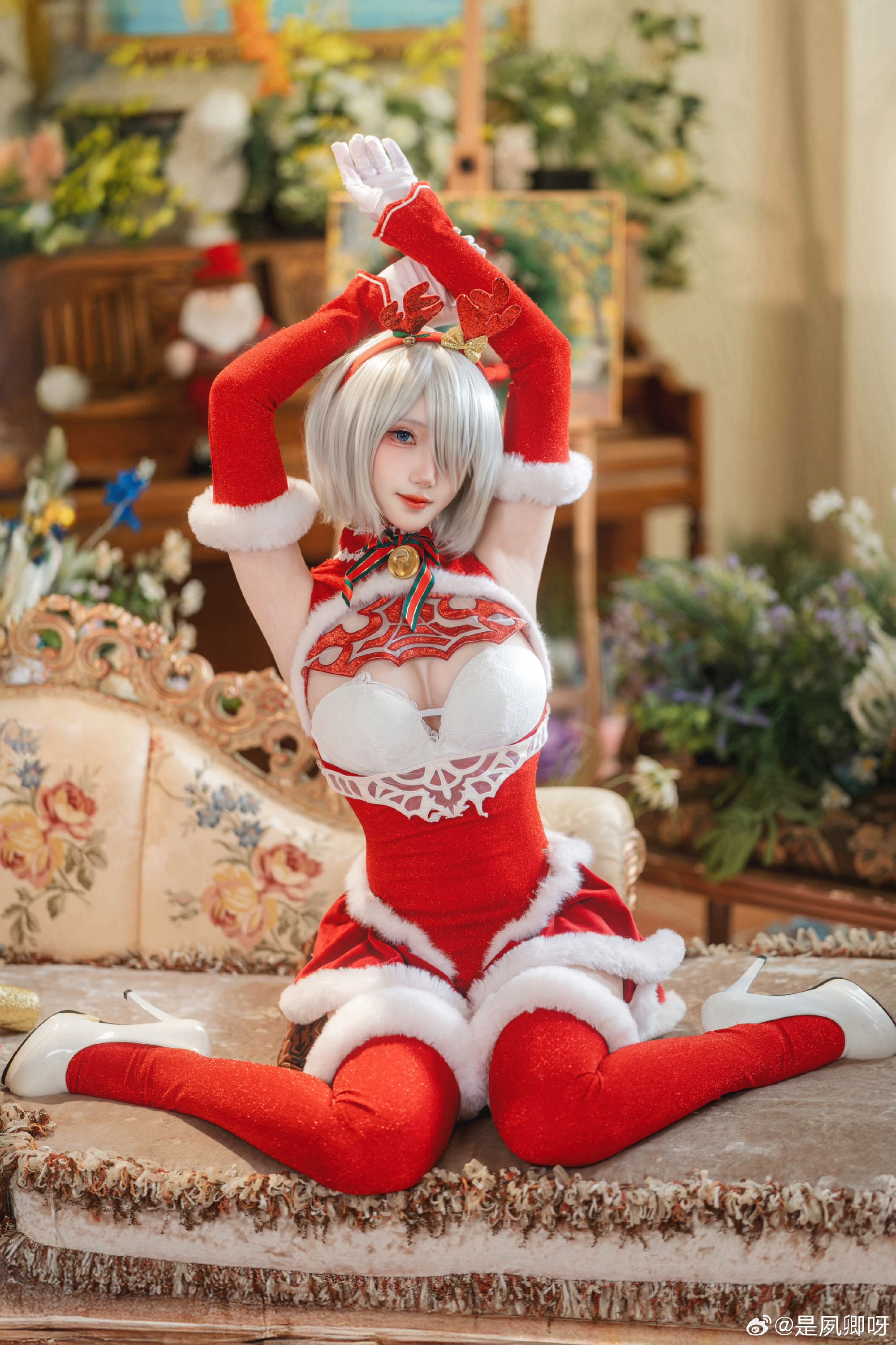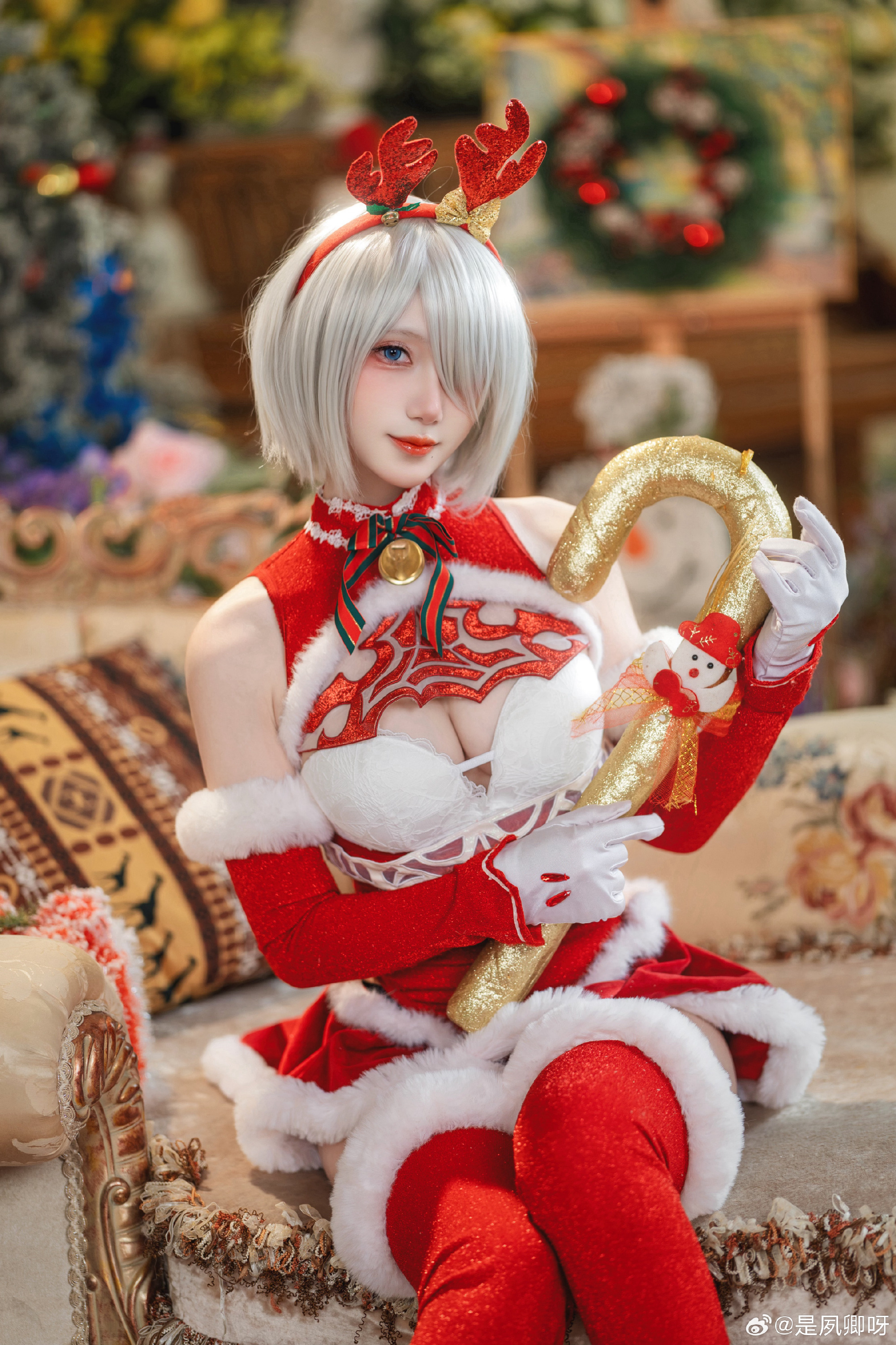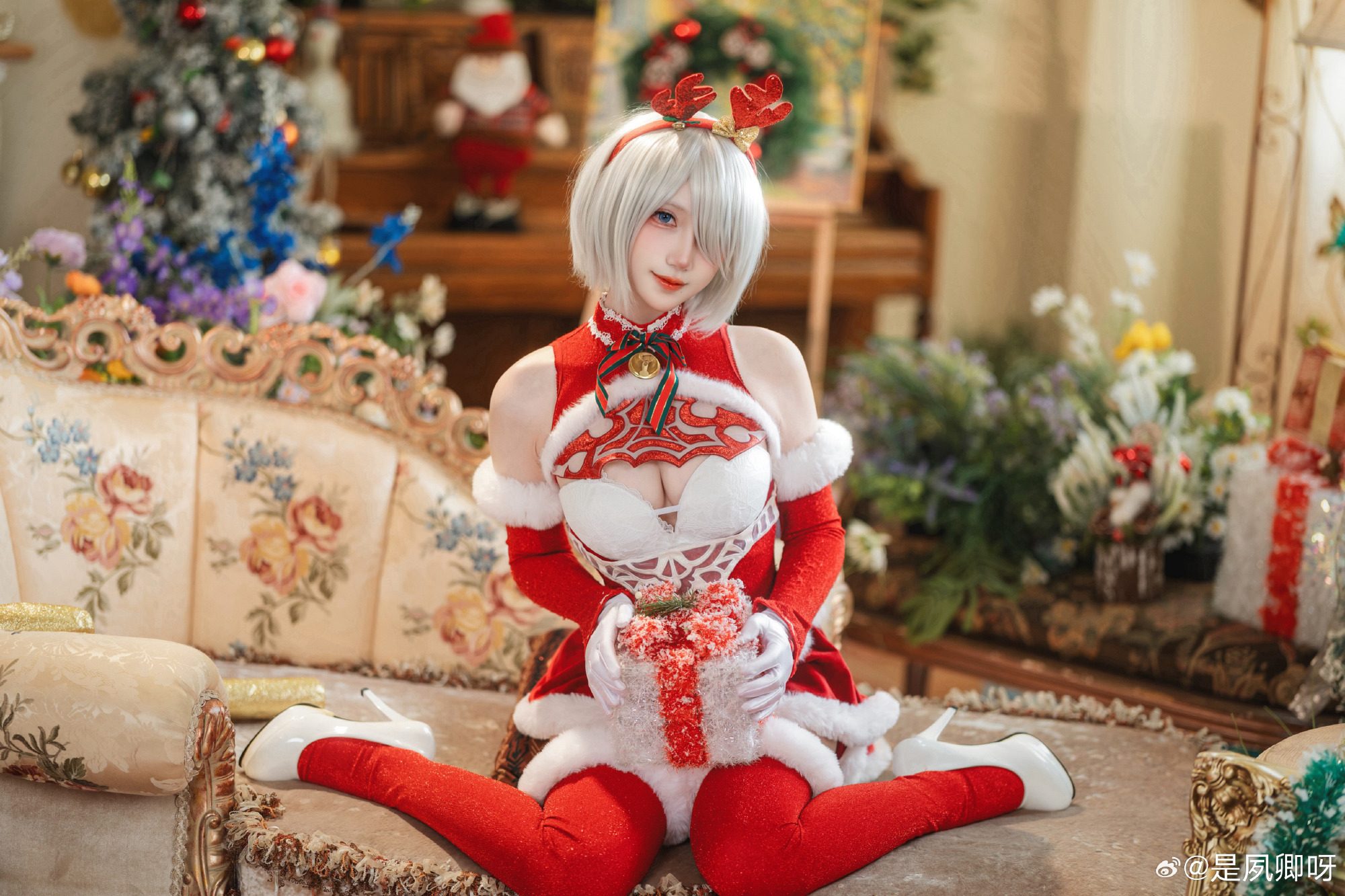 在圣诞节期间,coser @泥头跳跳猫 发布了《尼尔:机械纪元》中2B角色的圣诞主题cosplay照片。照片由摄影师 @Karis老K 拍摄,展现了coser身着红白相间圣诞服装,配有白色毛绒装饰和鹿角发饰,保留角色标志性的银白色短发。coser手持长剑,呈坐姿,表情平静地凝视镜头,巧妙融合了游戏的机械元素与节日氛围。这套作品在圣诞前夕赶制完成。