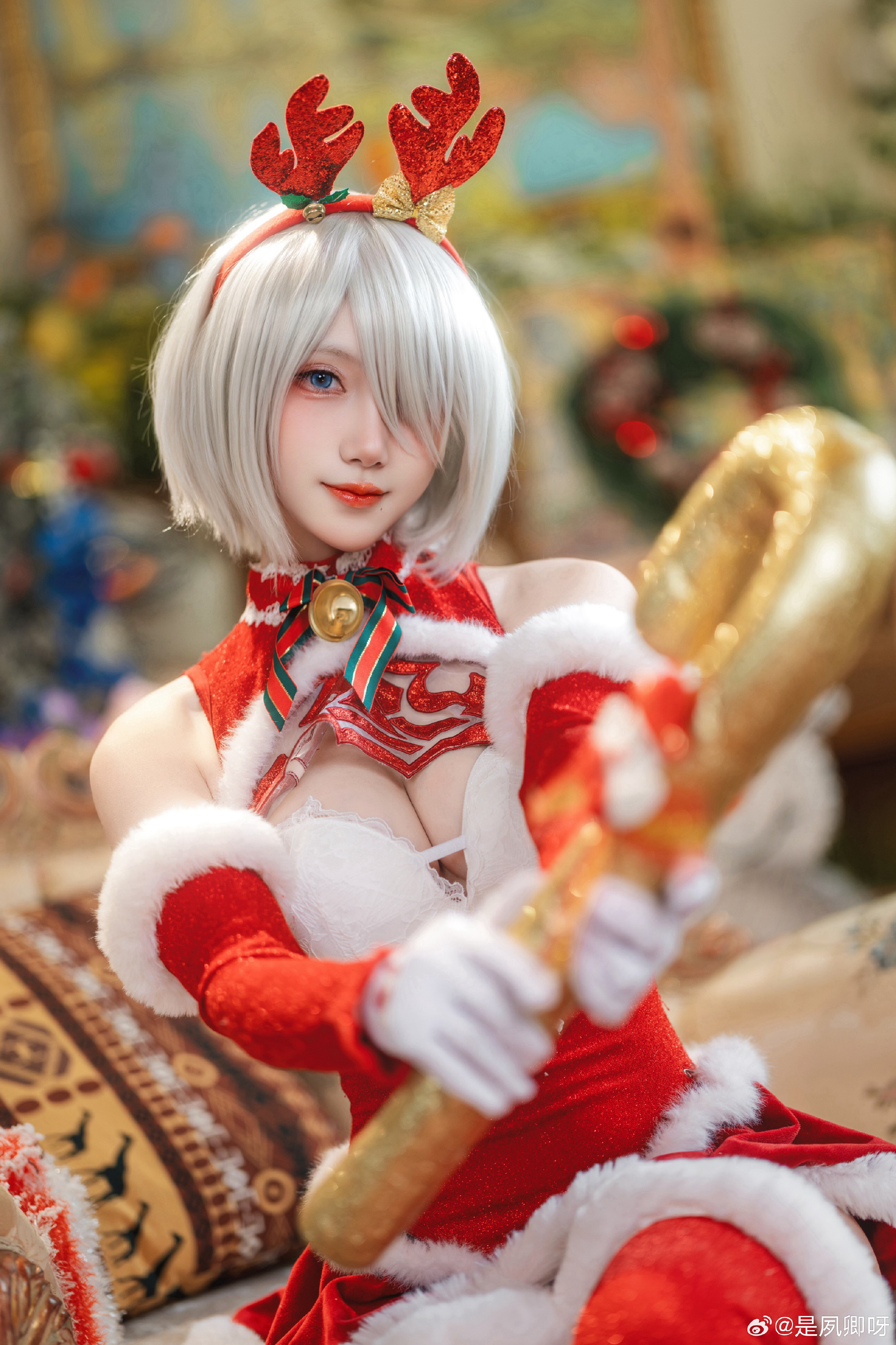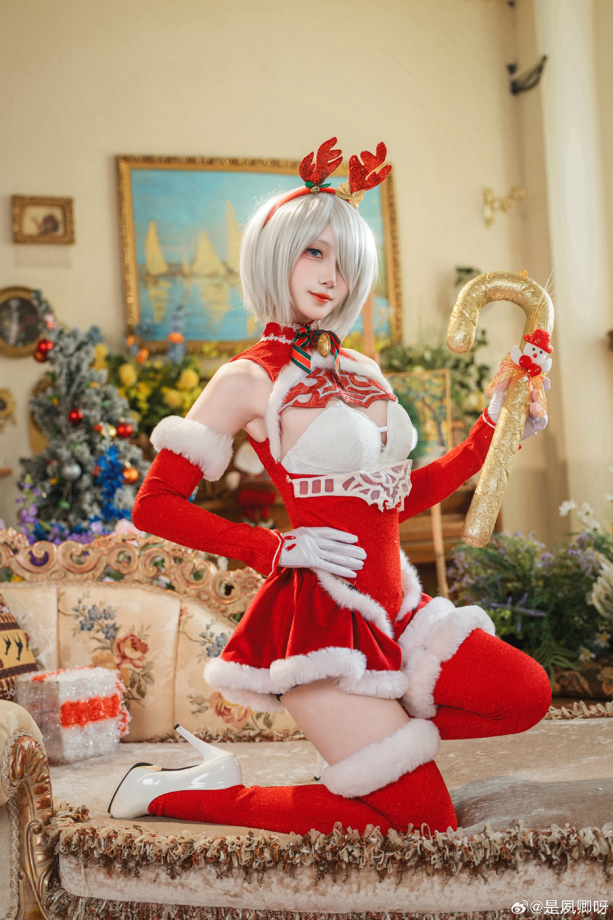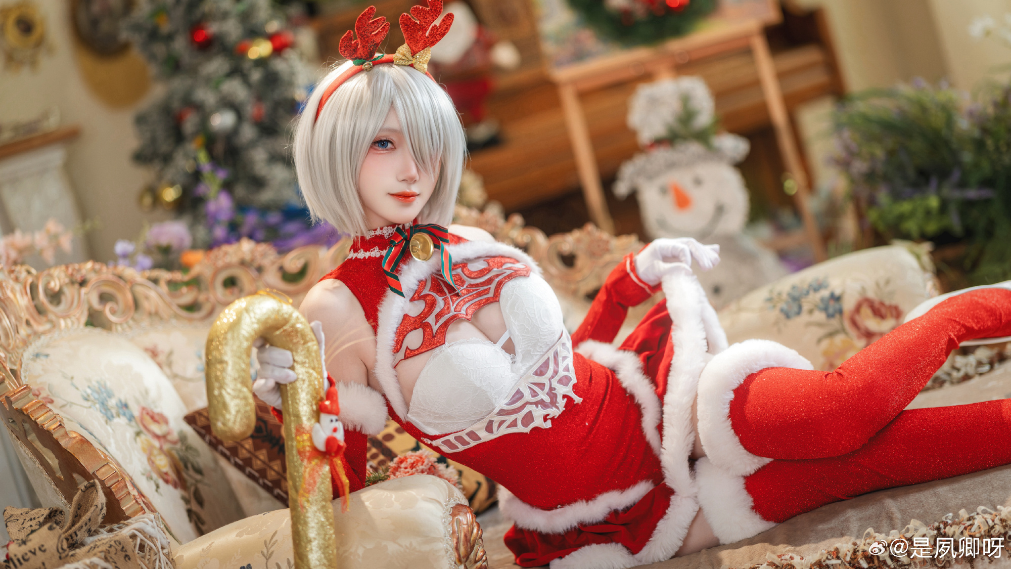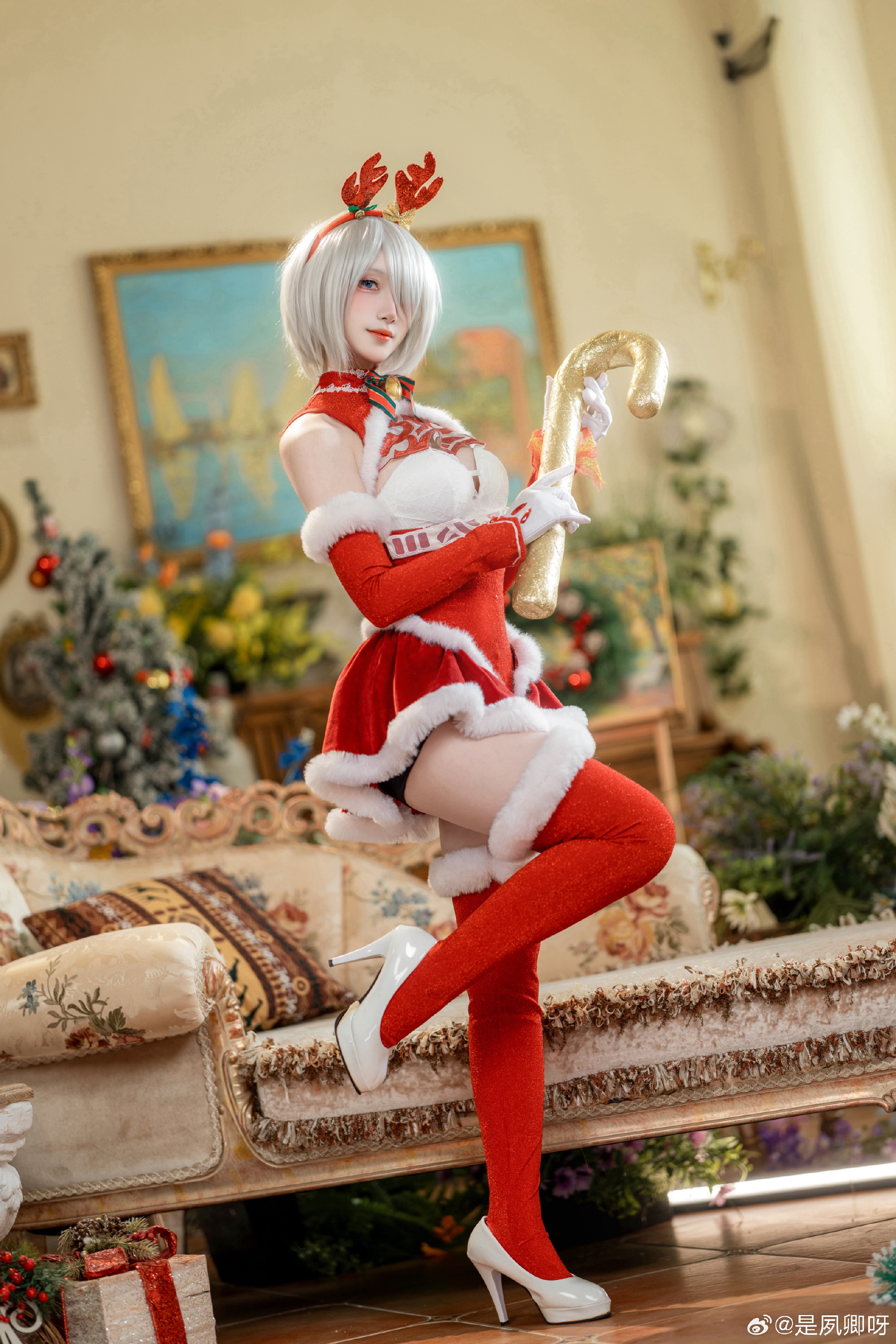 在圣诞节期间,coser @泥头跳跳猫 发布了《尼尔:机械纪元》中2B角色的圣诞主题cosplay照片。照片由摄影师 @Karis老K 拍摄,展现了coser身着红白相间圣诞服装,配有白色毛绒装饰和鹿角发饰,保留角色标志性的银白色短发。coser手持长剑,呈坐姿,表情平静地凝视镜头,巧妙融合了游戏的机械元素与节日氛围。这套作品在圣诞前夕赶制完成。