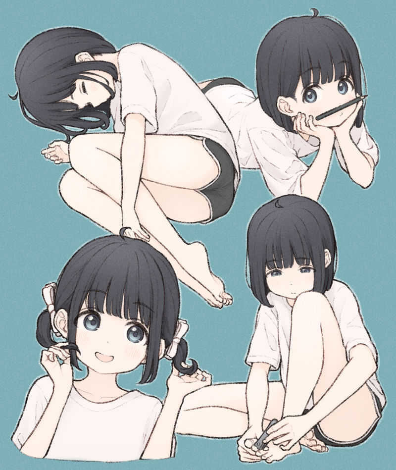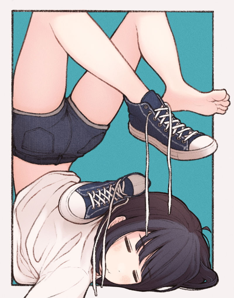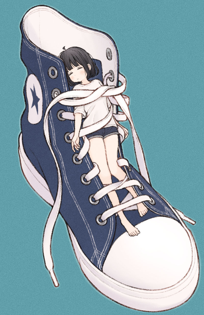 川口イッサ发布了一套21页PSD源文件,包含动漫角色插画的细节图层资源,已在PHOTO SHOP CC2023测试兼容。文件示例展示一幅青蓝色背景下的黑发女性角色倒立姿势:她闭眼微笑,穿着白色上衣、黑色短裤和星形标志的黑白帆布鞋,右手系鞋带,突出动态构图与服饰细节。这套资源适用于设计师学习和参考图层结构处理,支撑动漫风格创作的精细分解。(约135字)