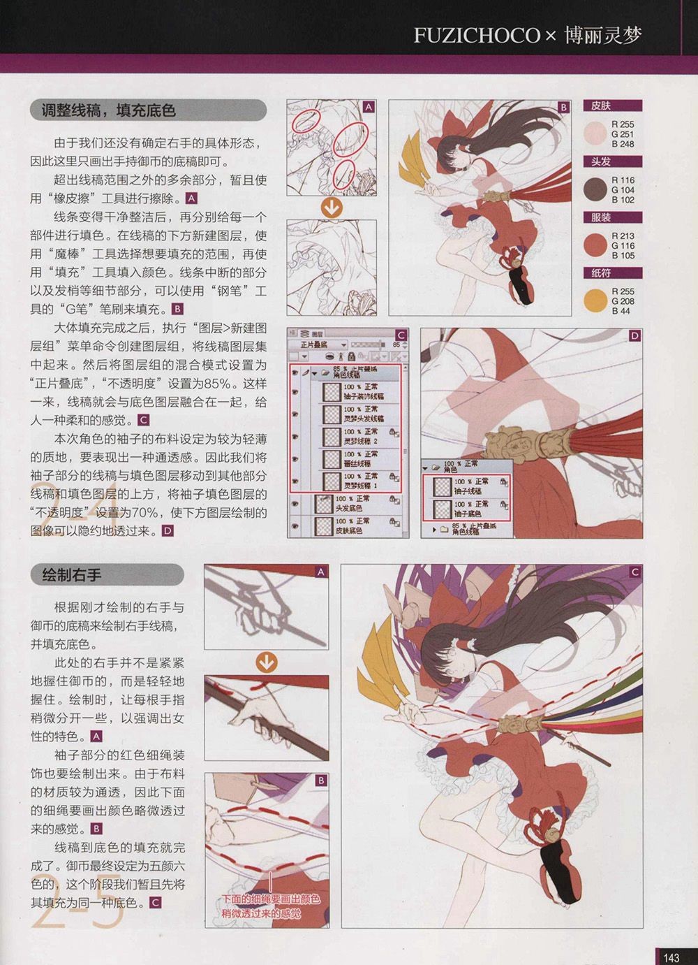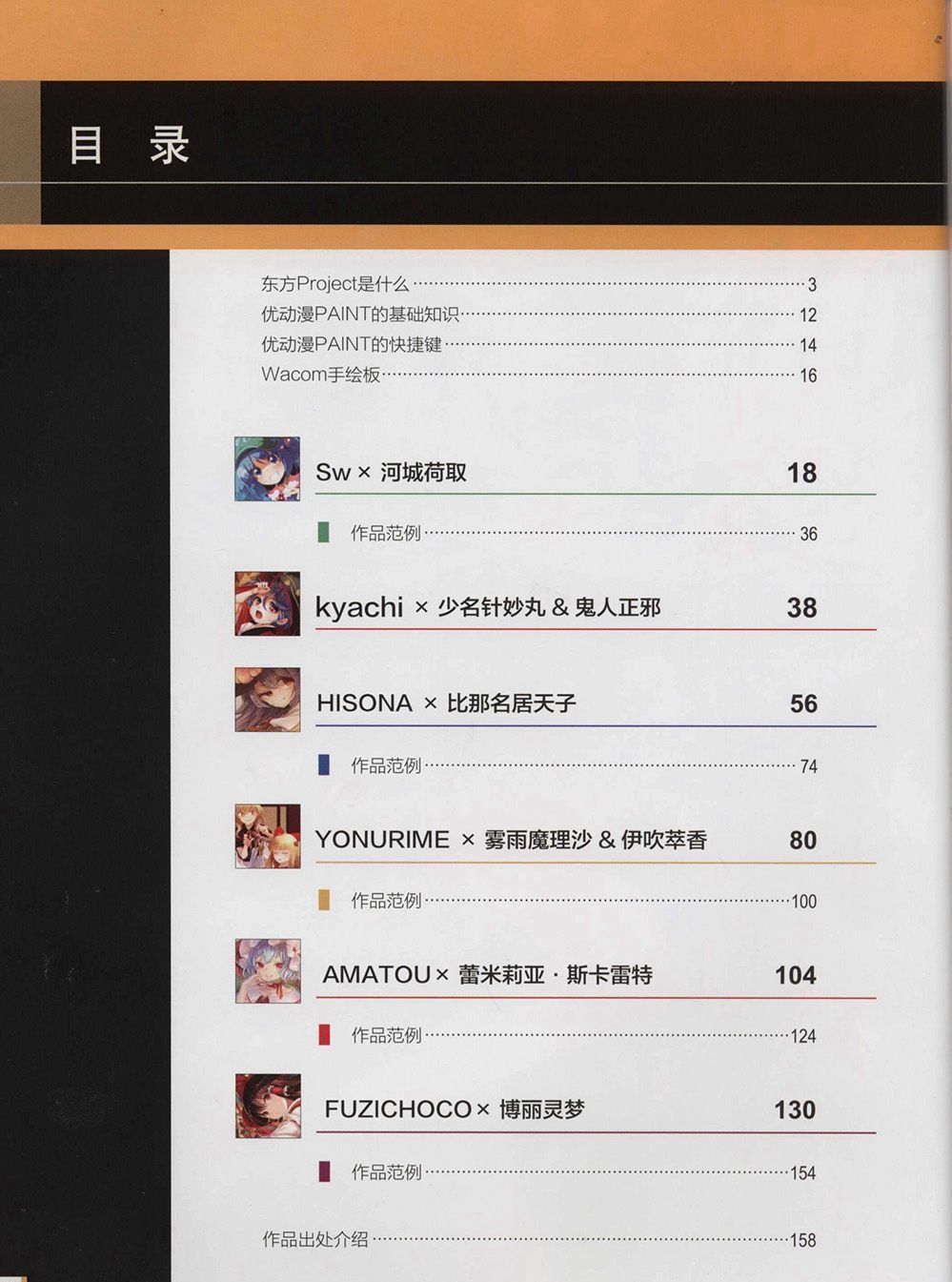在《优动漫PAINT东方同人插画设计》中,6位风格各不相同的Pixiv人气绘师将向大家介绍东方Project题材的插画以及绘制技法。书中不仅讲解了使用优动漫PAINT进行插画构图、起稿、上色及后期处理的制作全过程,还介绍了绘制秘技和思路解析。
