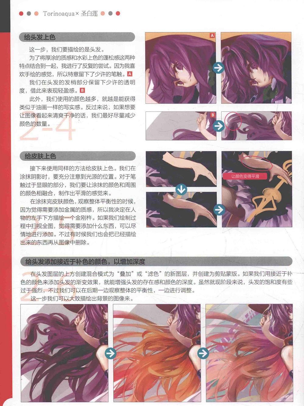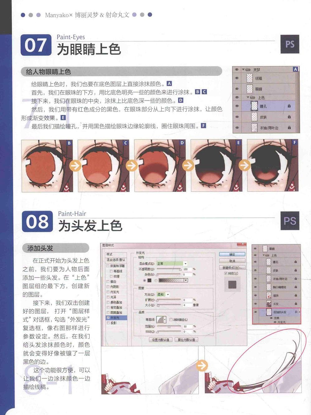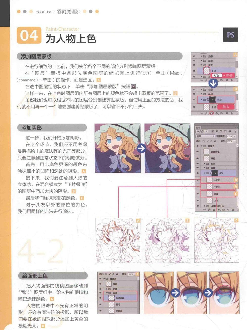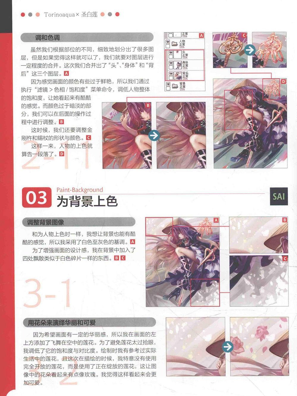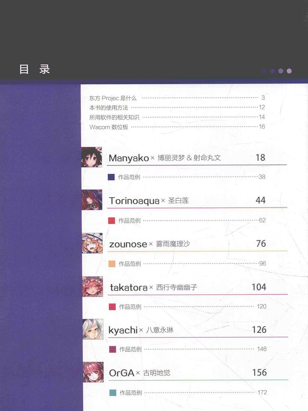在《当东方Project遇上Photoshop:6位Pixiv人气绘师带你走进绘画世界》中, 6位风格各不相同的Pixiv人气绘师将向大家介绍东方Project题材的插画以及绘制技法。书中不仅讲解了使用Photoshop进行插画构图、起稿、上色及后期处理的制作全过程,还介绍了绘制秘技和思路解析。