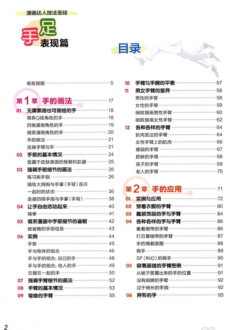 《漫画达人技法圣经:手足表现篇》以漫画人物手足表现为主题,从人物的手部、脚部开始入手,细致讲解了人物四肢的筋骨肌腱结构、写实类和Q版手足的绘制方法及表现要点,以及如何使用不同的姿势表现人物的情绪。其中系统地讲解了不同体型、不同年龄的人物的手部和脚部的绘制技巧和动作表现,以及不同姿势下的手足透视变化。