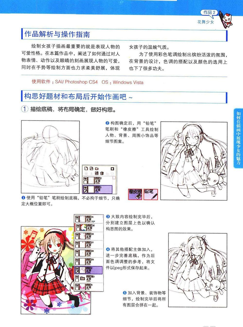 日本晴朗牧场的《用SAI描绘可爱的女孩子》教程专注于教授利用SAI软件高效绘制日系风格少女的技巧。核心内容包括图层分离上色、不透明保护与蒙版应用,以及自制笔刷和材质添加等实用功能。教程通过161P的实例演示,系统讲解软件操作逻辑,重点解决板绘中发型表现与服装细节处理等难点,帮助创作者提升数字绘画效率与画面表现力。