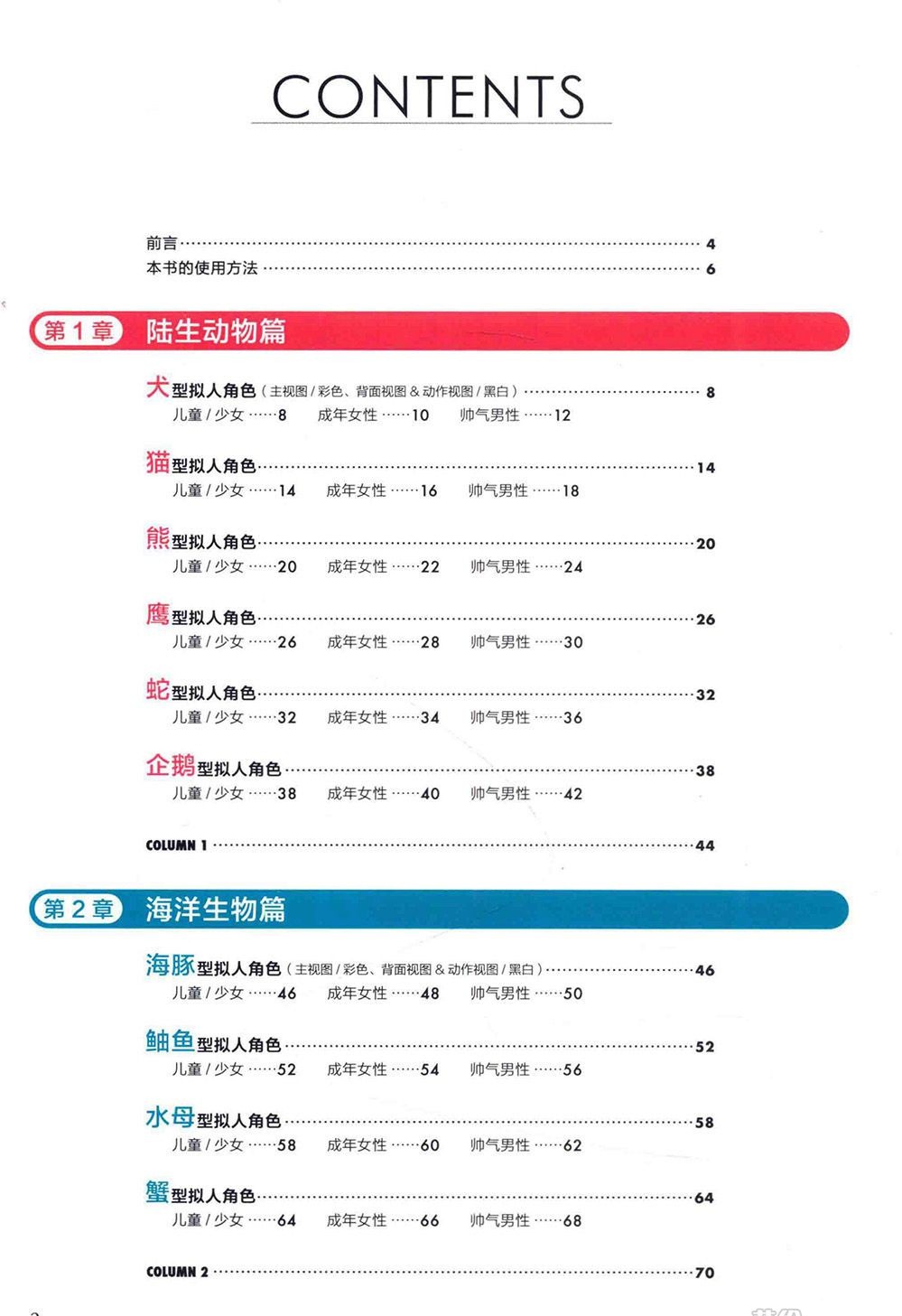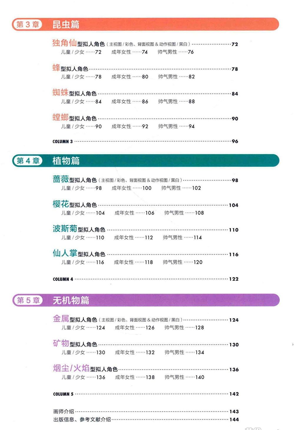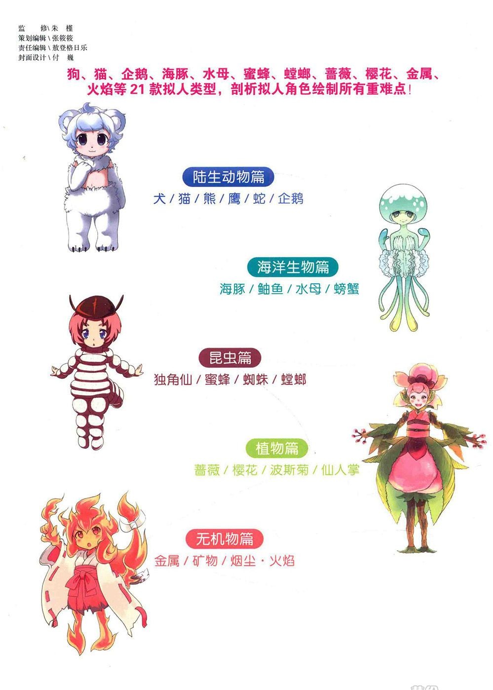 狗、猫、企鹅、海豚、水母、蜜蜂、螳螂、蔷薇、樱花、金属、火焰等21款拟人类型,剖析拟人角色绘制所有重难点!本书主要分为陆生动物篇、海洋生物篇、昆虫篇、植物篇和无机物篇,主要从这5大主题和人物的结合上来讲解拟人角色的创作技法,每款类型又分成少女、少年、成年男女这些类型,让读者全方位了解不同年龄层次的角色形象。本书的体例非常丰富,从人物正面视图、背面视图和动作视图三个角度展现一个形象,让读者三维角度理解角色画法。