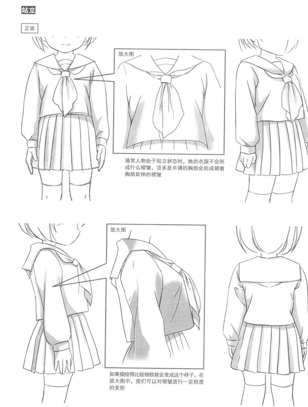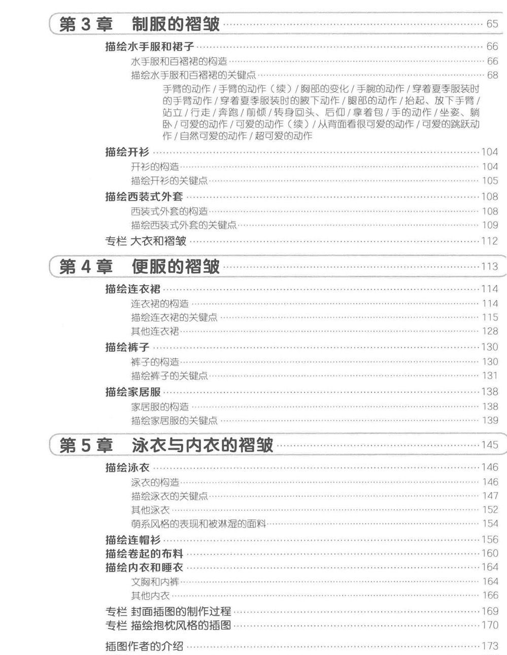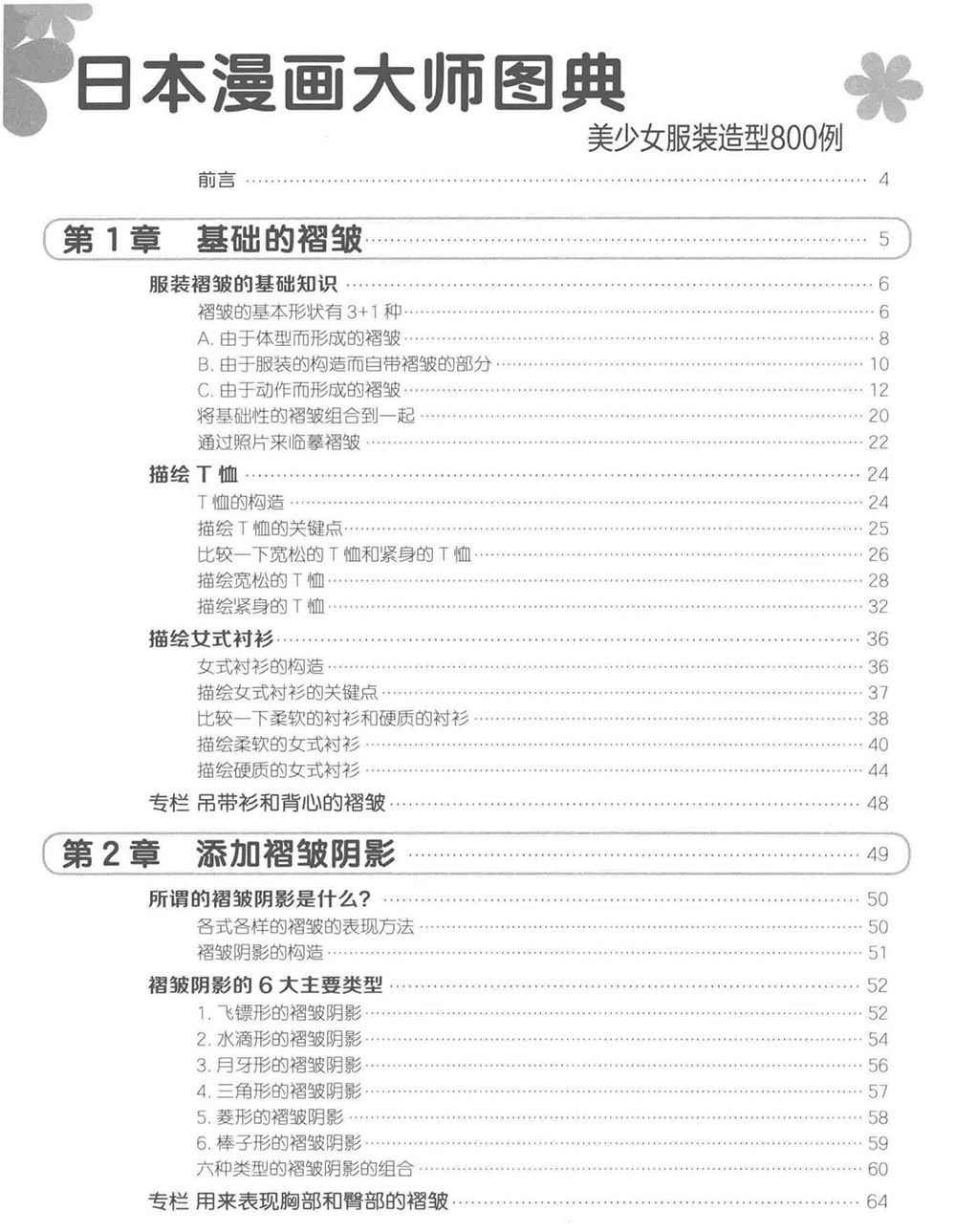 《日本漫画大师图典 美少女服装造型800例》第1、2章讲解服装及皱褶的基础知识和如何打造美少女服装的立体感。第3—5章选取漫画中最常见的美少女服装类型进行讲解,包括水手服、西服、衬衫、连衣裙、裤子、家居服、泳衣与内衣等。可以帮助读者全面、有效地学习美少女服装造型的相关知识,书中的所有范例既可作为直接临习的范例,也可以成为即时可用的美少女服装参考素材。