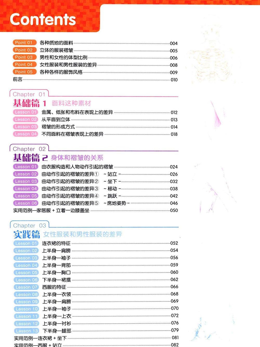 《漫画达人技法圣经:服饰造型篇》共分为六章。从服饰的各种不同的面料讲起,接着讲解了服饰上产生的褶皱与人体的关系,帮助读者了解服饰造型的基础。然后根据穿着人物性别的不同,对男女性服饰分别进行了细致的讲解,以便服、职业装、制服、角色扮演服装为例进行细致的讲解,使读者能够更好地了解漫画人物服饰的画法。最后一部分的讲解让读者可以根据前面学习到的知识创作具有科幻风格的服饰。