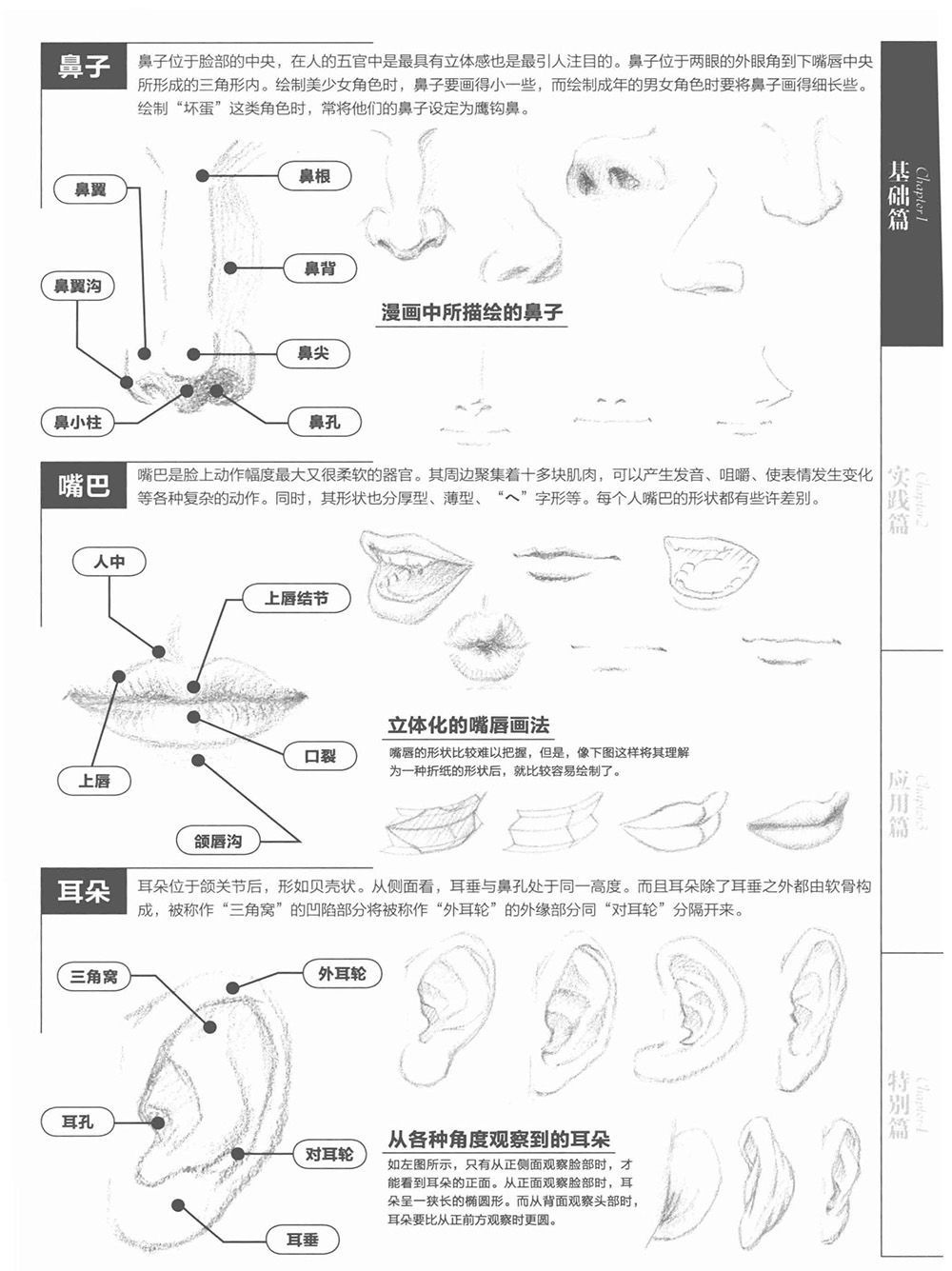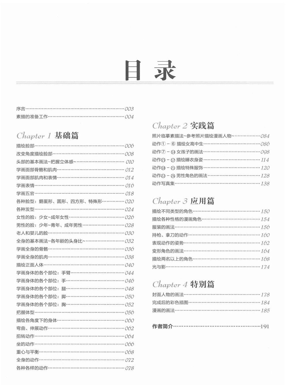 《漫画达人技法圣经(角色设计入门篇)》共分为四部分,分别是“基础篇”、“实践篇”、“应用篇”和“特别篇”。基础篇从绘制面部开始,对人物脸型、发型、人体基本结构和各个部位、身体动作等相关内容进行了讲解,帮助读者掌握人体各个部位的画法。实践篇介绍了参考照片中的真实人物绘制漫画的技巧,并收录了动作照片资料集。应用篇介绍了不同类型角色的绘制技巧,收录了服装动态、光影表现等拓展内容。特别篇解析了封面彩图的绘制步骤案例,并收录了分格漫画的绘制技法。