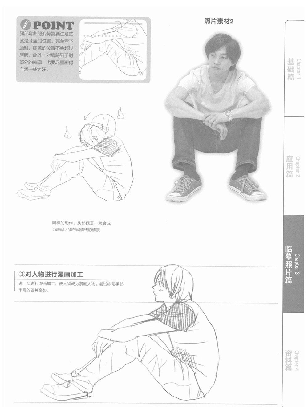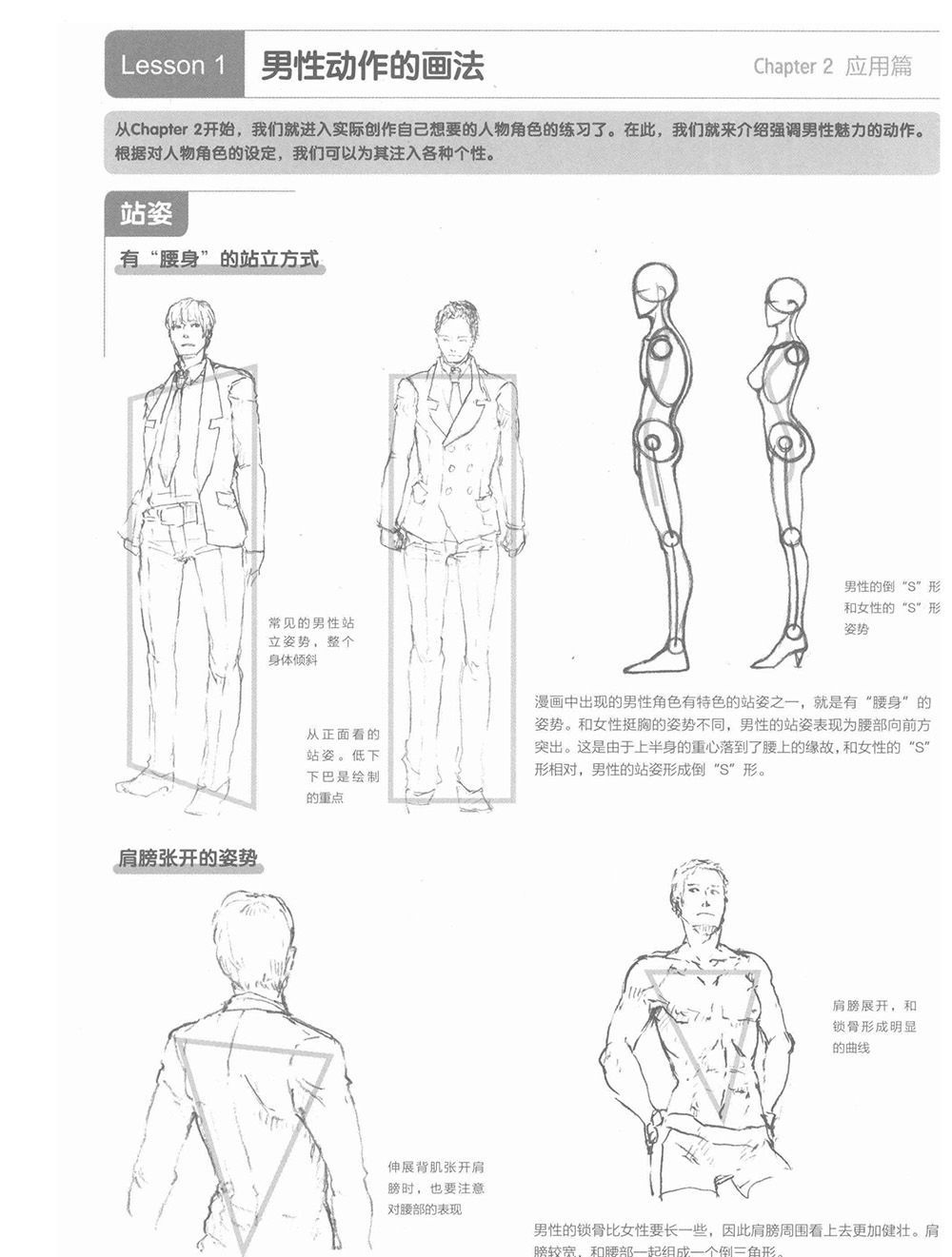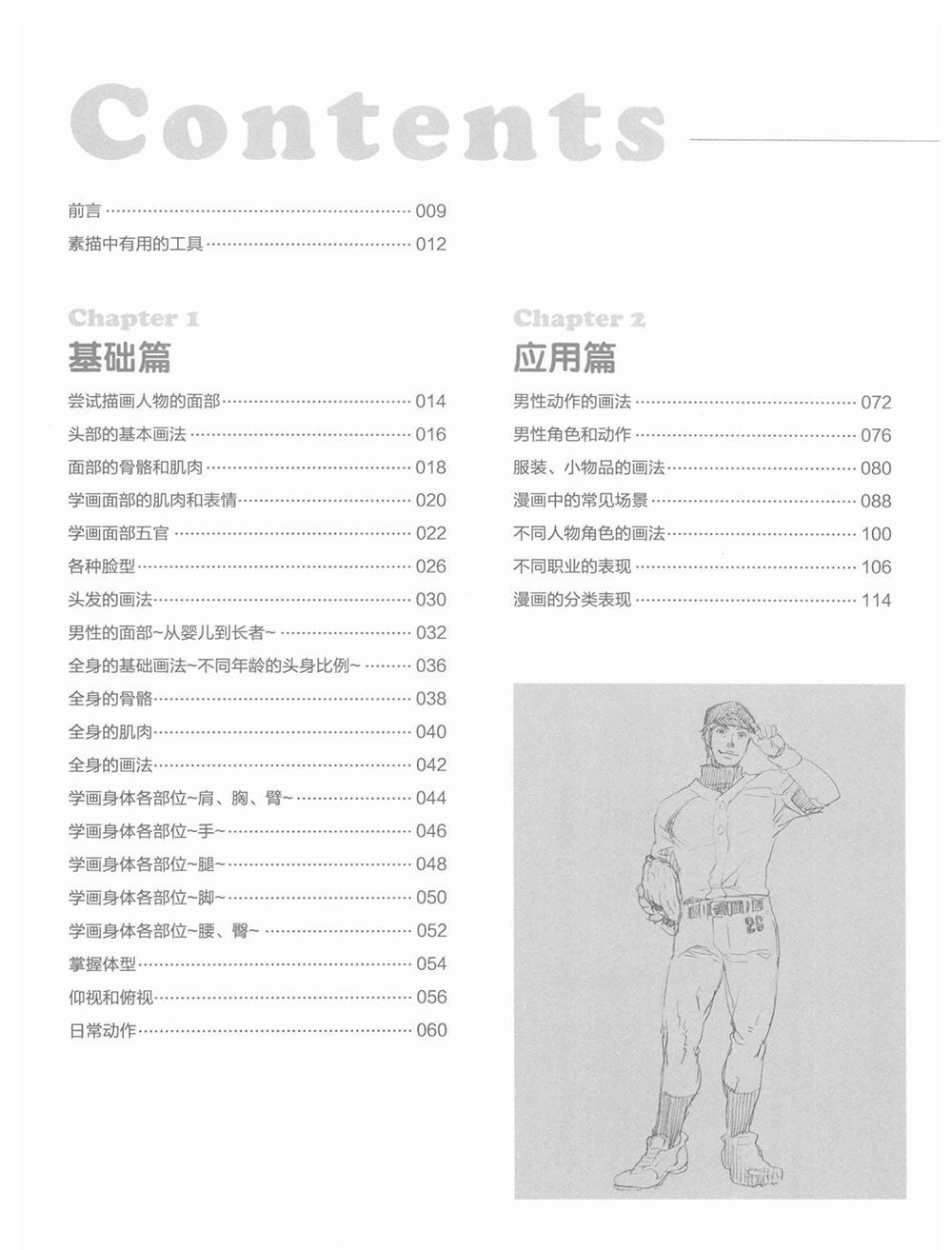 《漫画达人技法圣经(美少年综合篇)》全书共分为四章,第一章从面部的画法开始介绍,其中对男性特有的骨骼和肌肉构造等人体基本结构进行了重点讲解,可以帮助读者掌握男性身体各个部位的画法。第二章将漫画故事中常见的男性角色进行区分,介绍不同身份人物的作画要点,让读者可以在此基础上创作出具有个人风格的漫画角色。第三章介绍了使用真人照片进行漫画角色塑造的“照片临摹法”。第四章作为“资料篇”介绍了各种作画时可以使用到的有用工具,以及可以帮助读者获得素材的方法。