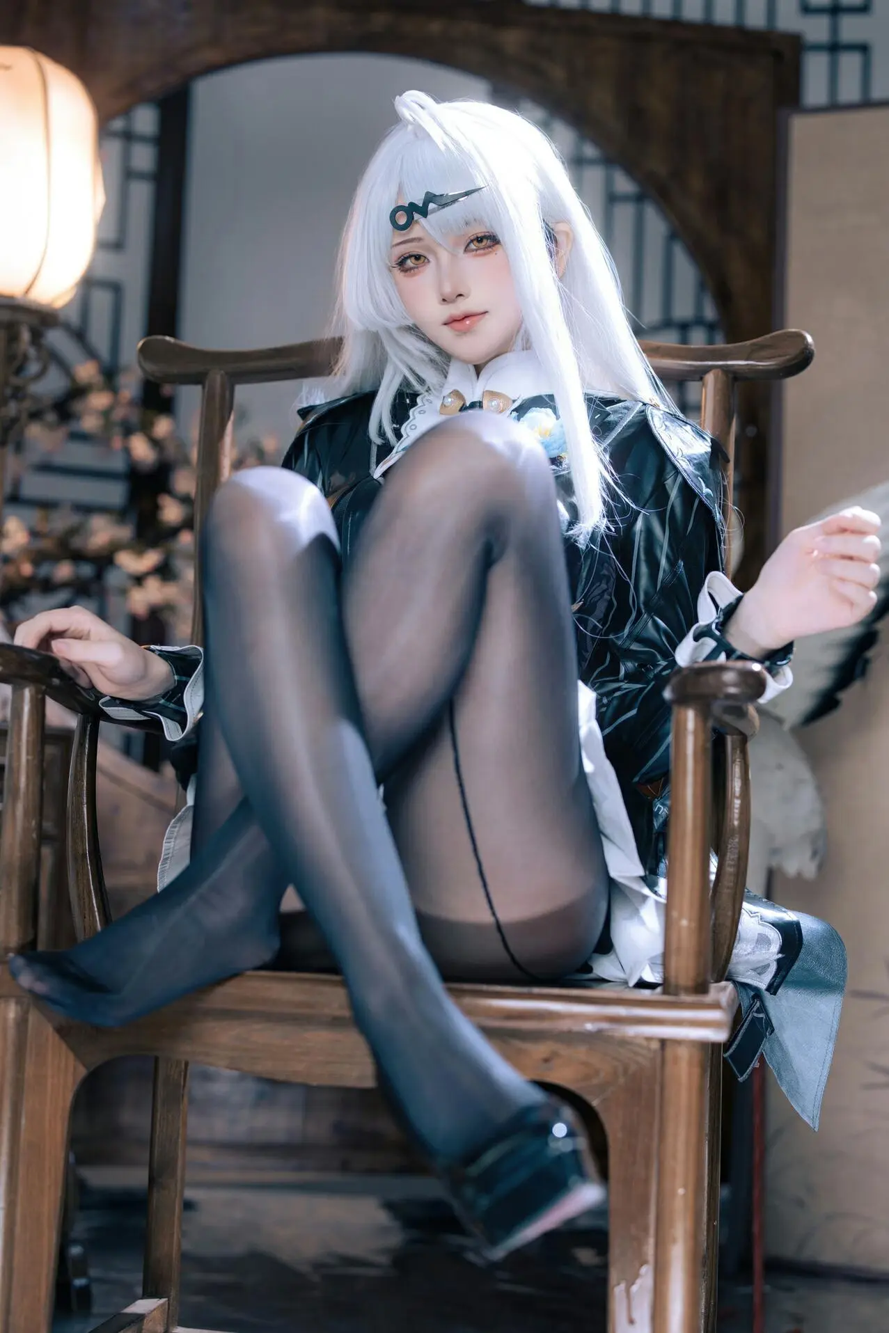 Cos鉴赏 1月28日 编辑 铃兰不响闪亮明星 取消关注 关注 私信 本文摘要: 屿鱼在Cosplay作品中精准呈现游戏《绝区零》角色仪玄·墨形影踪,完美还原其银白色长发、额前黑色纹样装饰及黑白色精致制服细节(包括高领白衬衫、亮面外套、左胸蓝色花朵徽章、袖口与裙摆传统纹样)。姿势为蹲坐姿态,一手轻触脸颊、一手扶肩,神情沉静带微笑;背景搭配中式窗棂、灯笼和白鹤雕塑,烘托出东方神秘氛围,高度契合角色原始气质与美学精髓。— 本文部分摘要灵感源自 DeepSeek 深度思考 ✨ 给TA买糖 共{{data.count}}人 人已买糖 仪玄造型屿鱼cos摄影写真绝区零造型角色扮演
