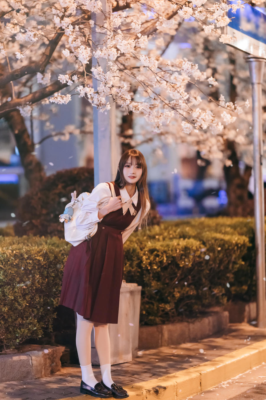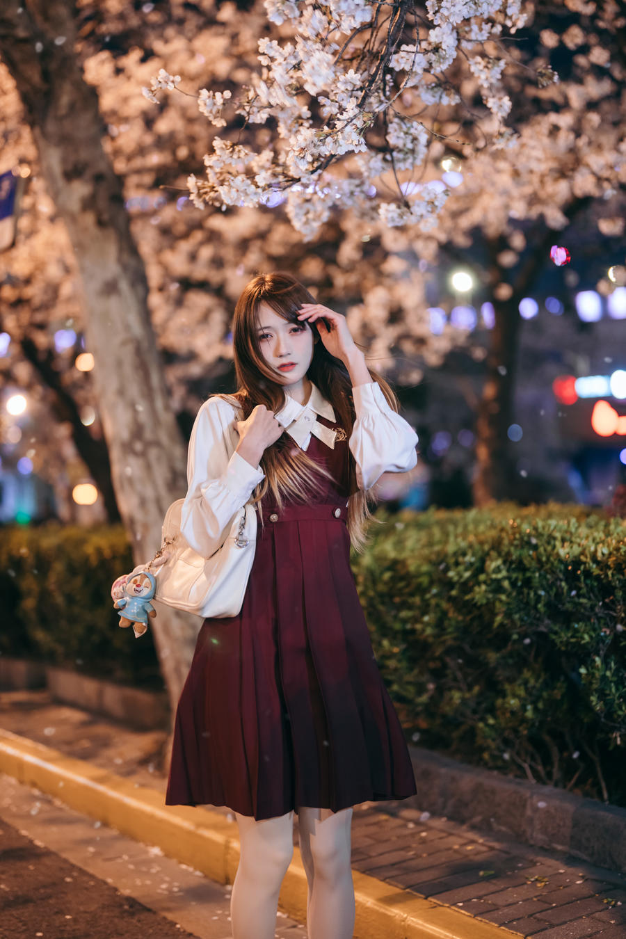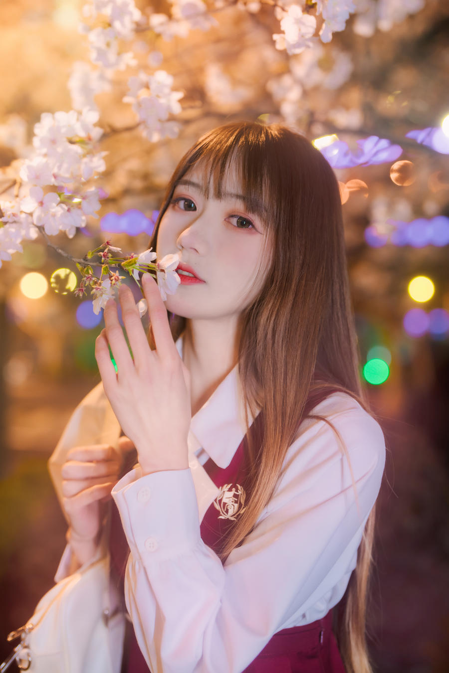 Cos鉴赏 4月2日 编辑 铃兰不响闪亮明星 取消关注 关注 私信 本文摘要: 作品“邂逅樱花雨”呈现了一幅春日夜樱下的写真美图,主体为一位年轻女性,她身着白色上衣与酒红色连衣裙,搭配白色长袜和黑色皮鞋,棕色长发,面带温柔微笑,双手轻抱白色物品。场景设置在夜晚盛开的樱花树下,花瓣在灯光下飘落,背景点缀着城市夜景与霓虹灯饰。整体画面浪漫唯美,精准捕捉了樱花雨中的梦幻氛围,呼应了标题的邂逅主题。— 本文部分摘要灵感源自 DeepSeek 深度思考 ✨ 少女遇见一场樱花雨,把它揉进粉色的梦里! 给TA买糖 共{{data.count}}人 人已买糖 Cosplay作品写真夜景人像樱花写真甜美造型