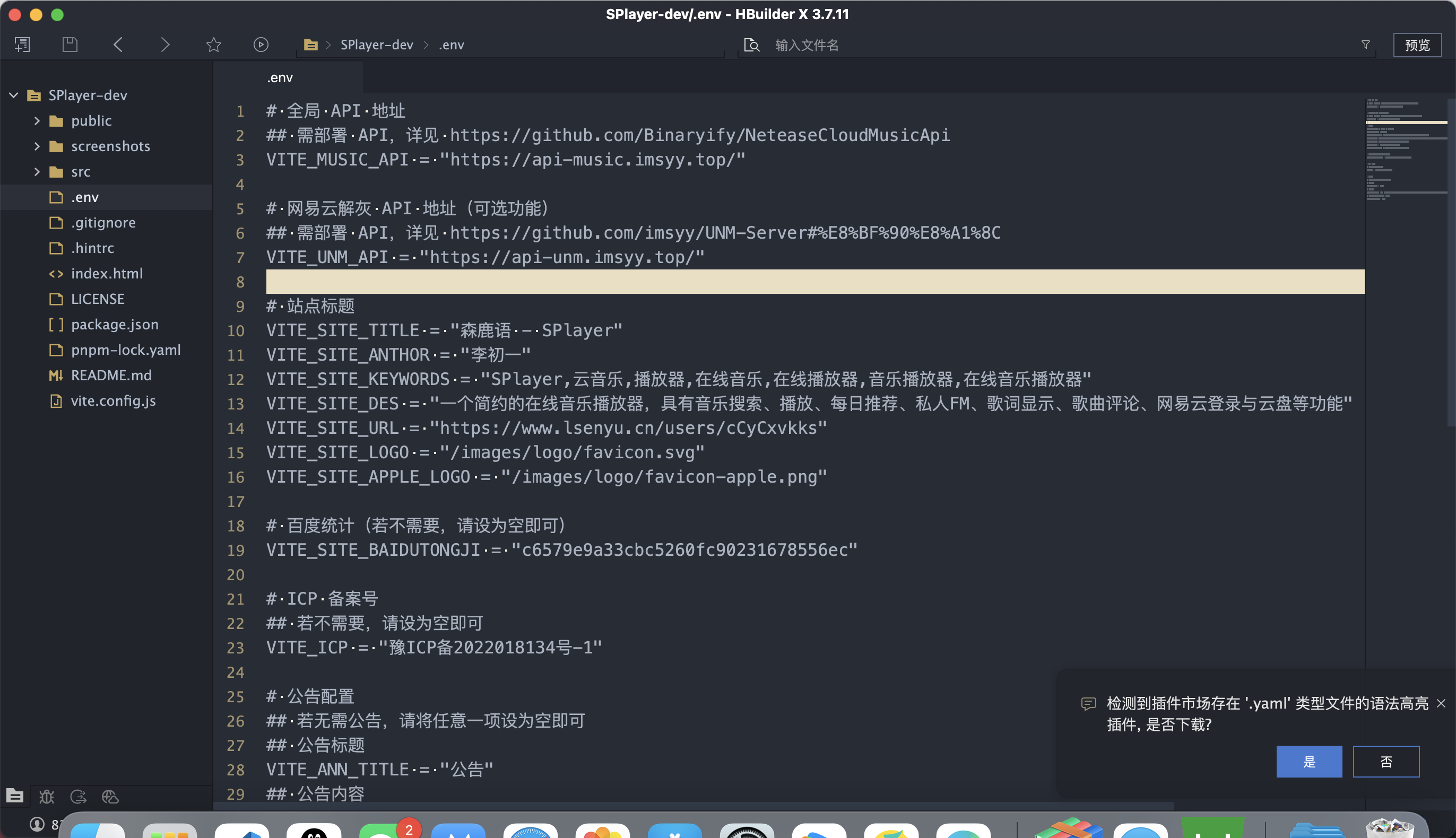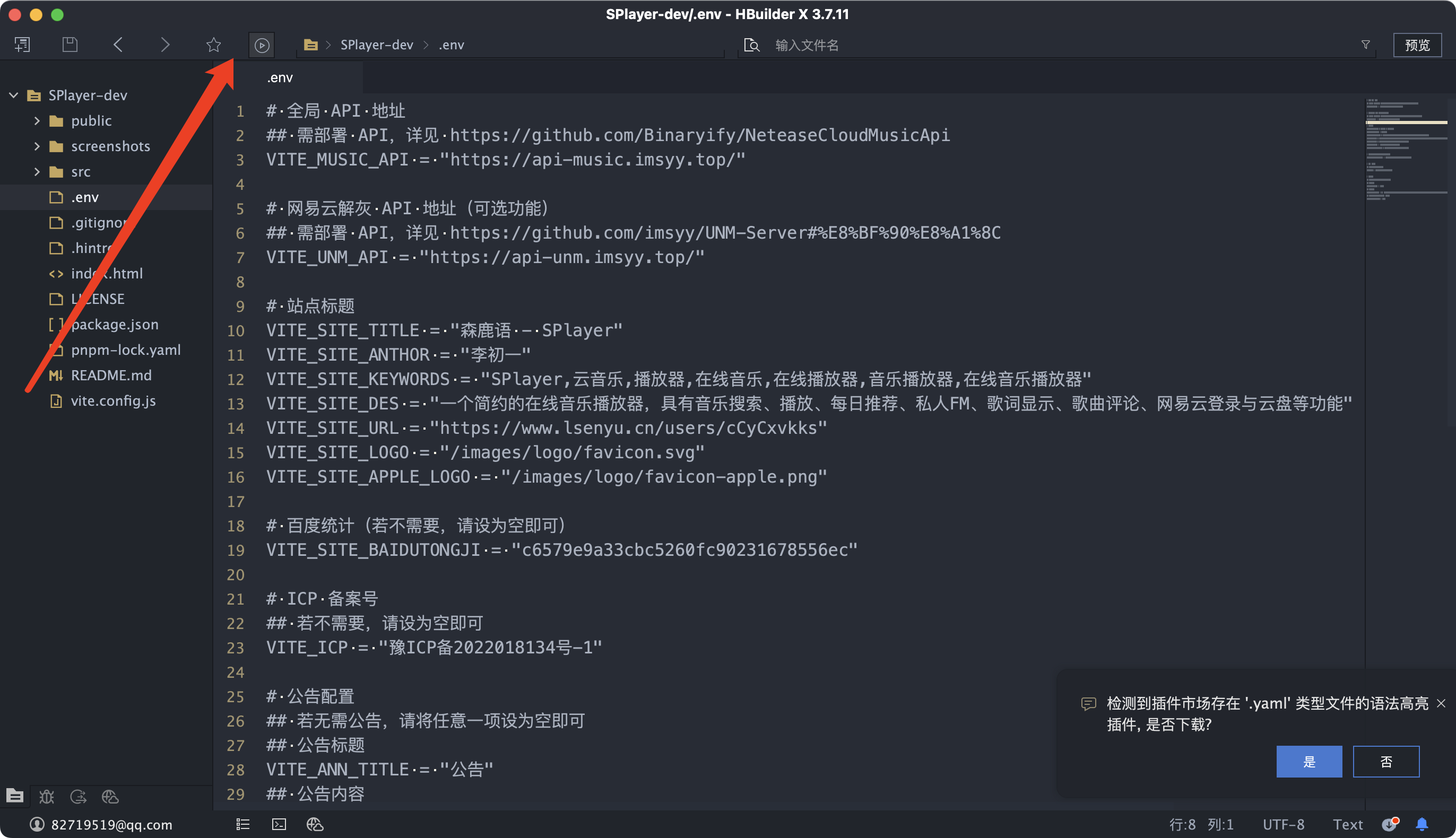 .env文件中的VITE_MUSIC_API中填入 API 地址(必需)