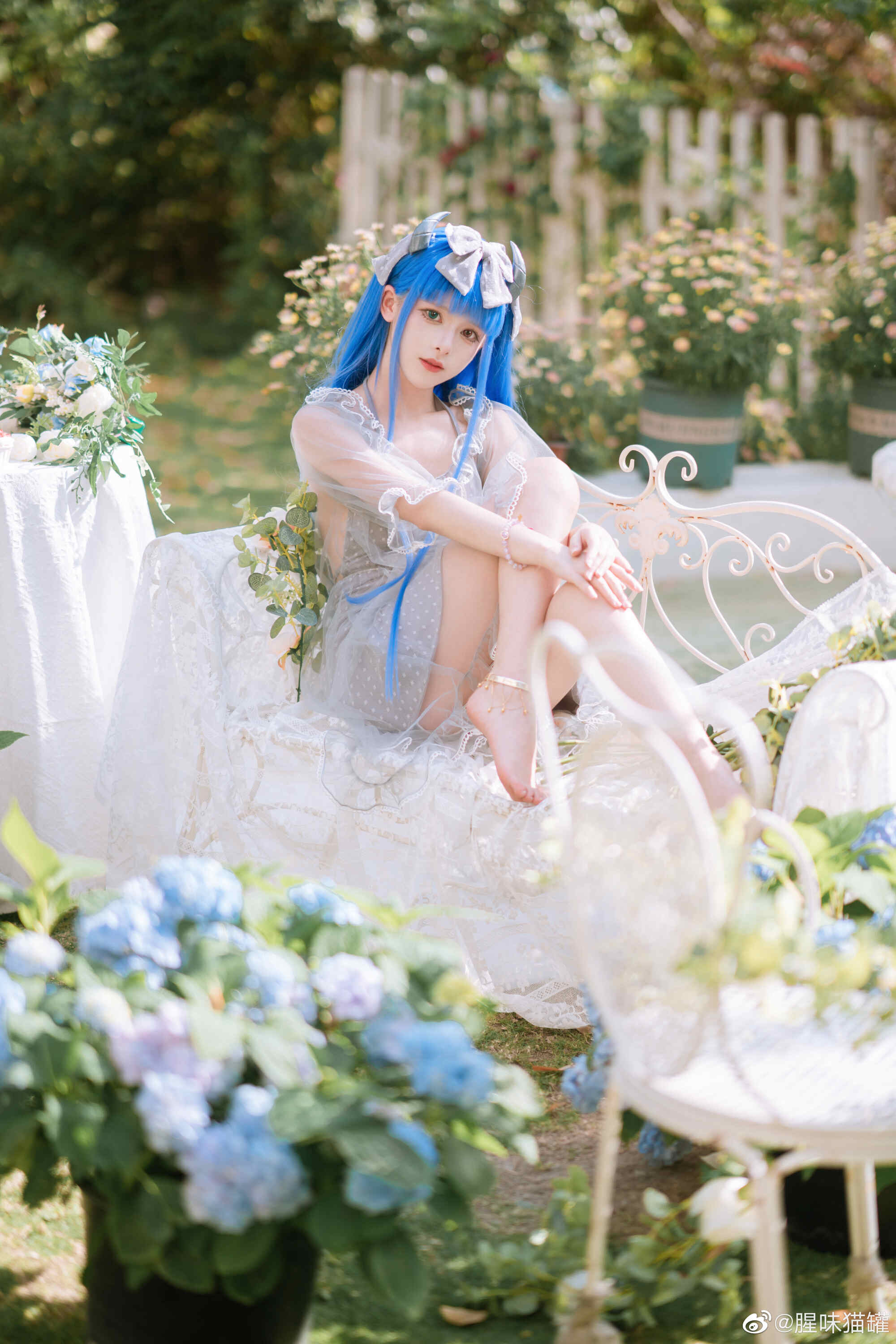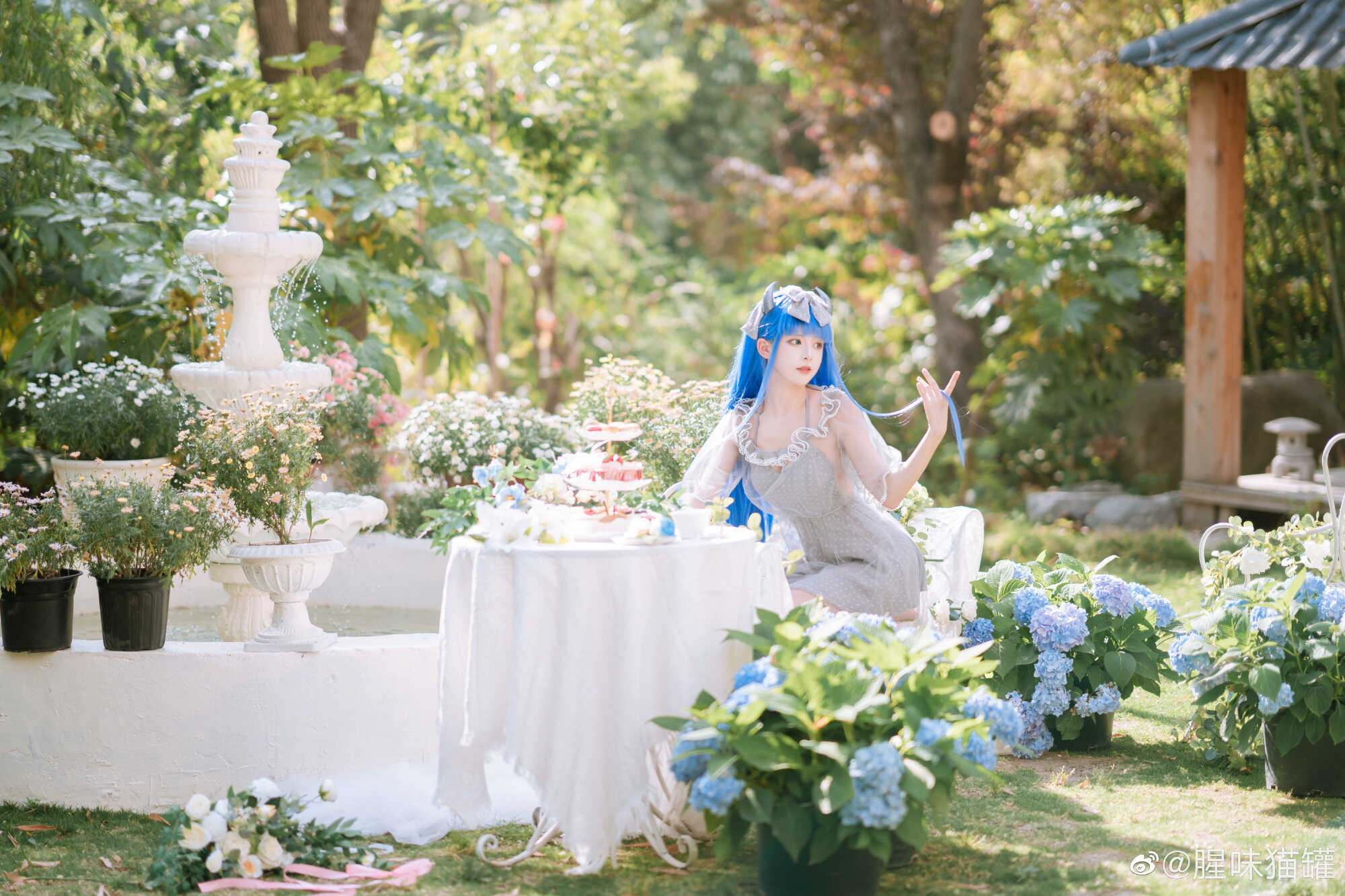 本文展示了一组基于手机游戏《碧蓝航线》角色“峦”的真人cosplay作品。扮演者腥味猫罐身着浅灰蕾丝连衣裙,头戴白色蝴蝶结,以优雅坐姿呈现角色温柔互动的氛围;同时提及另一位角色可畏由贤儿sherry出演。照片在户外茶点台背景中拍摄,突出了角色还原的细节和整体美感。(146字)